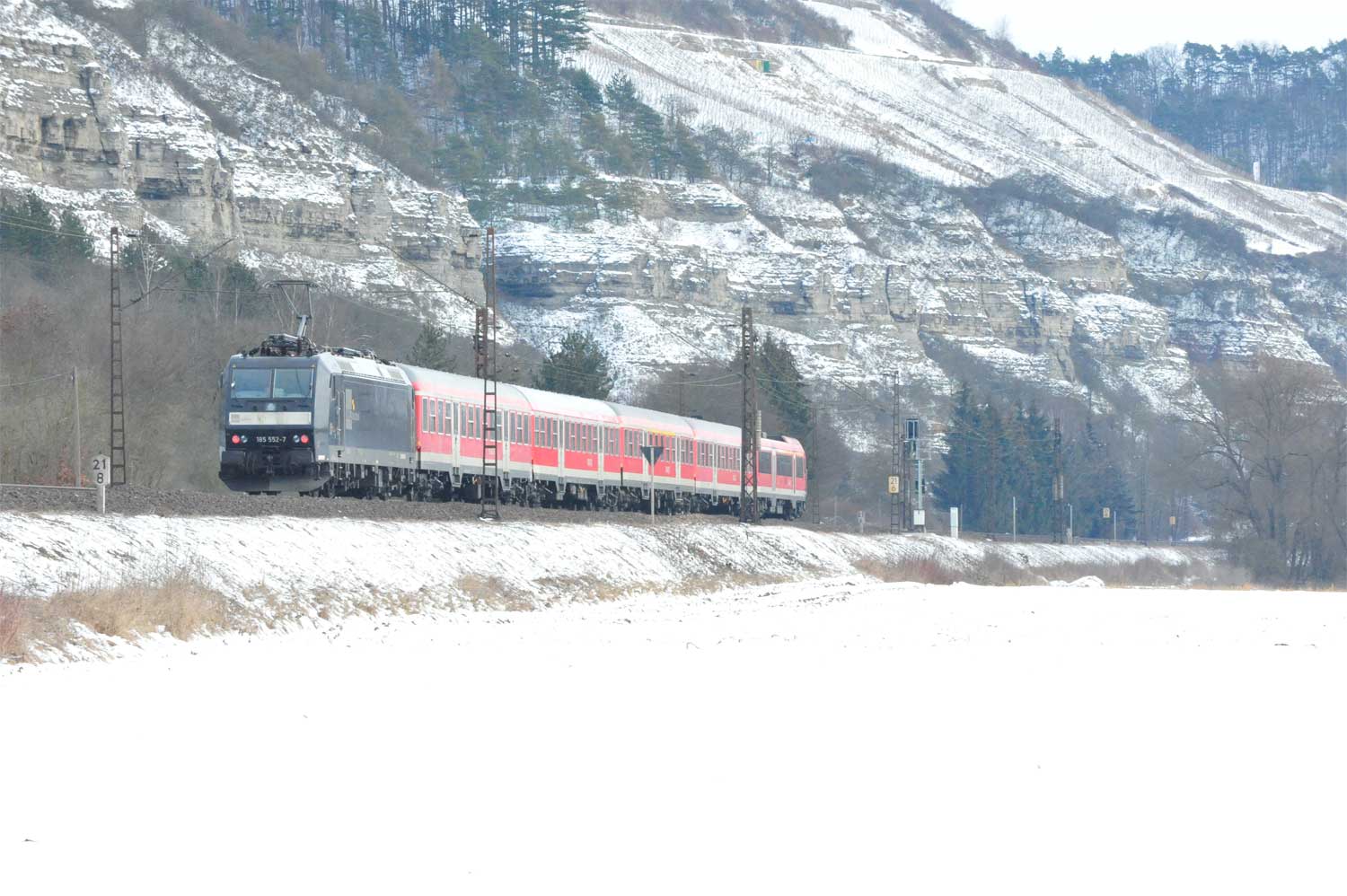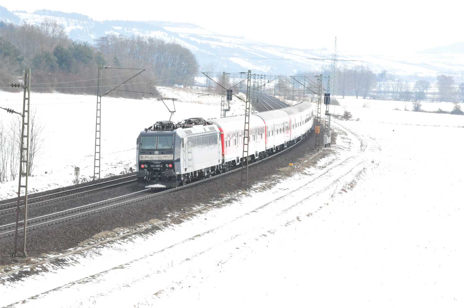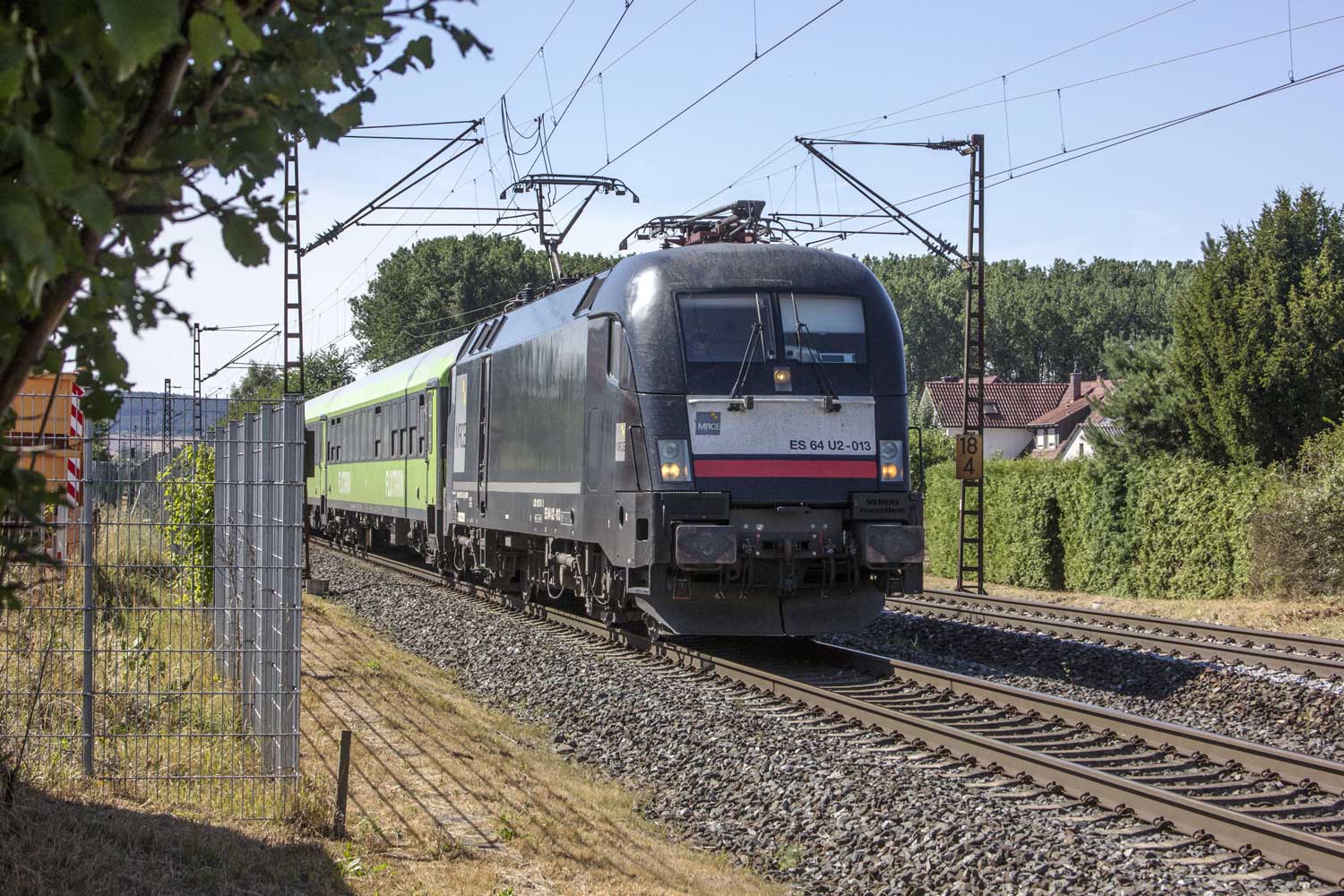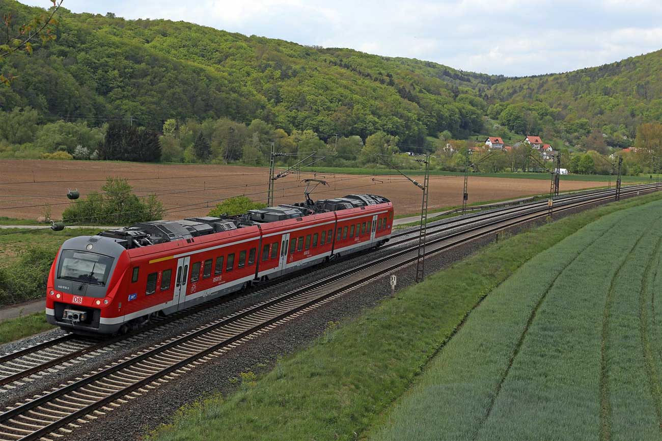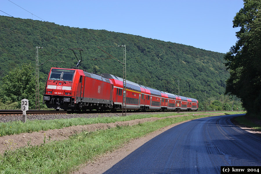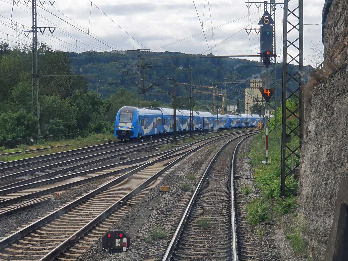 Der Zug befindet sich auf der Strecke Flieden 0,0 - Gemünden (Main) 56,338