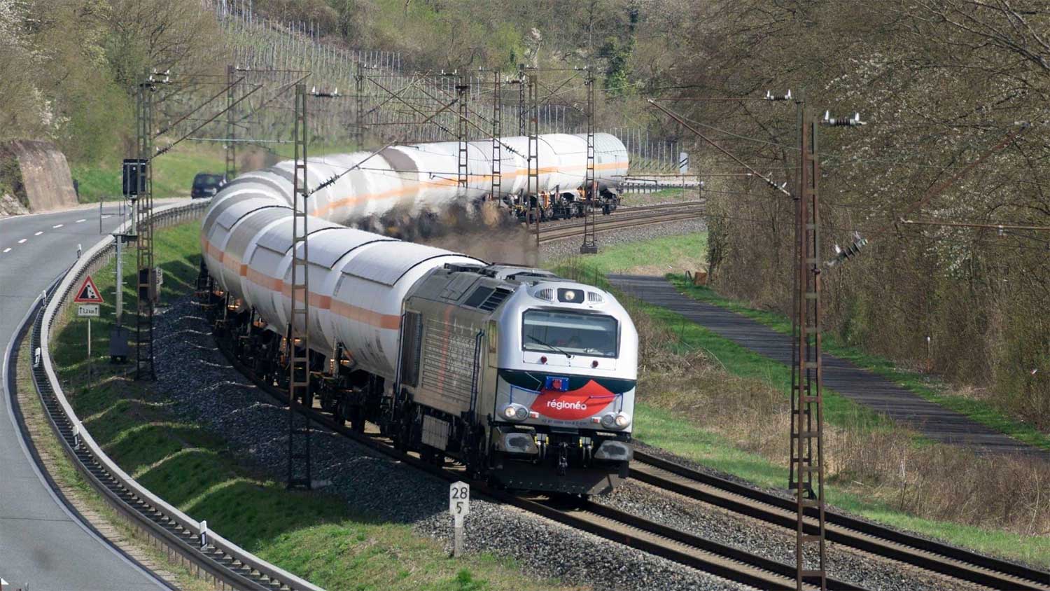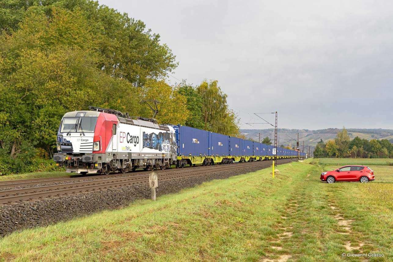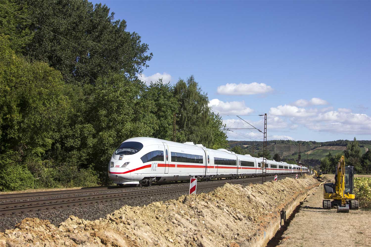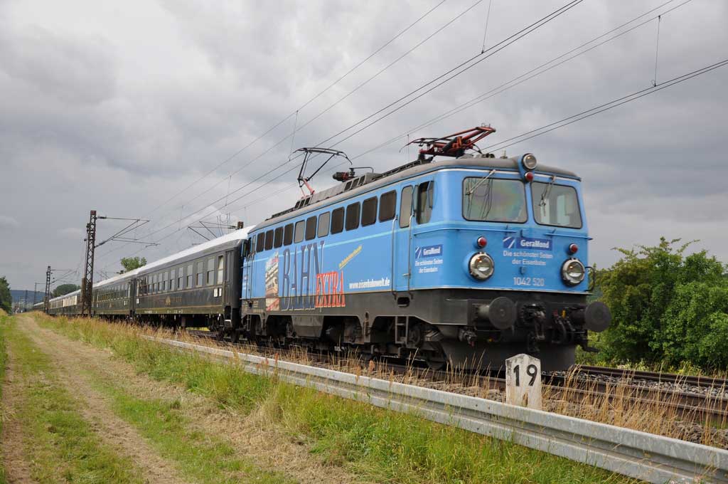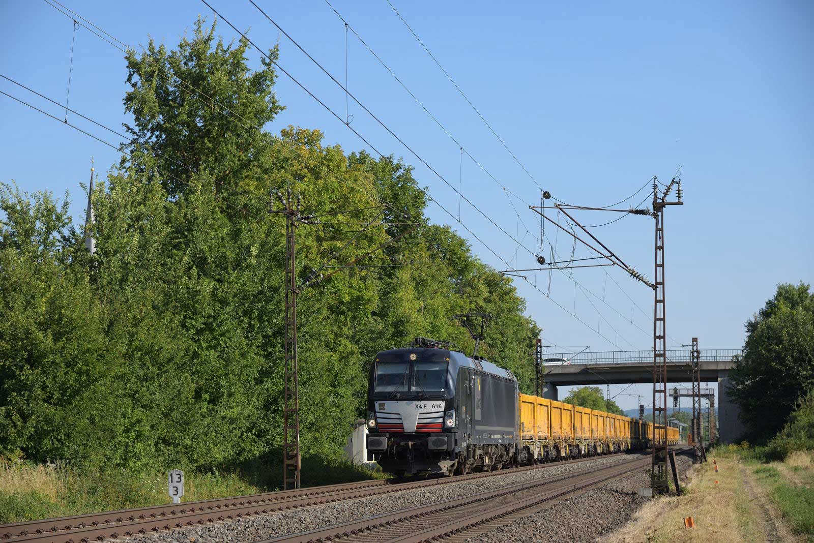 Der Zug befindet sich auf der Strecke Flieden 0,0 - Gemünden (Main) 56,338