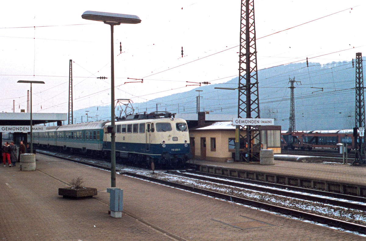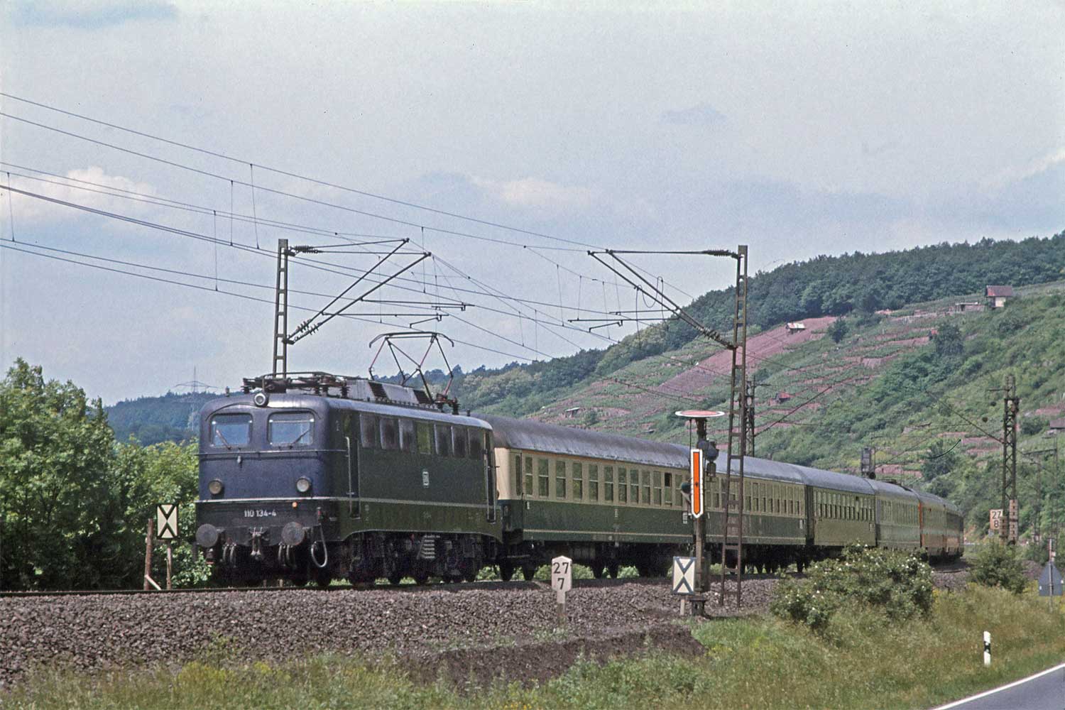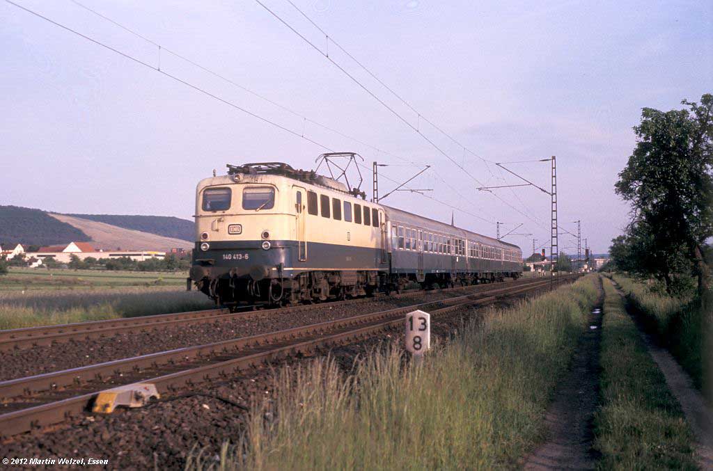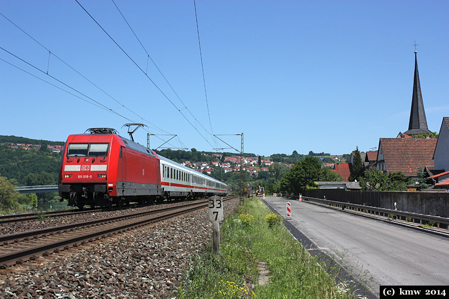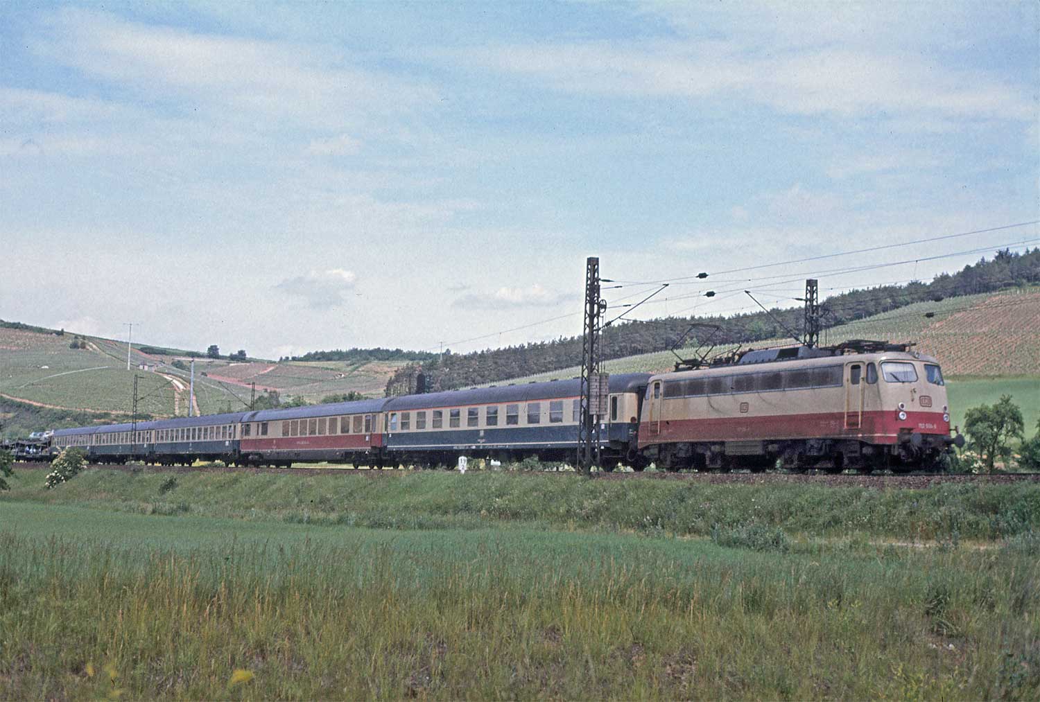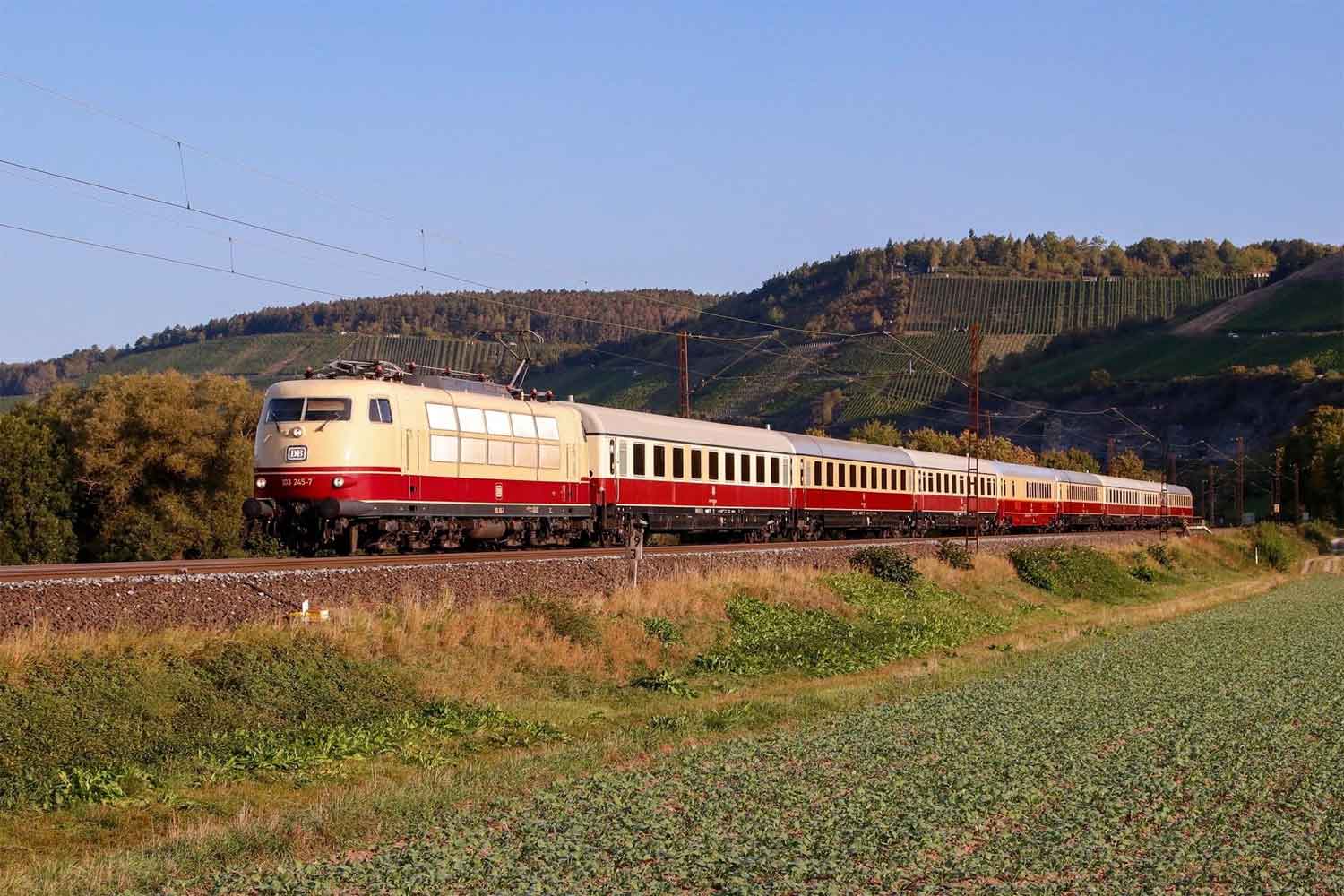 Der Zug mit der 103 194 befindet sich auf der Strecke Flieden 0,0 - Gemünden (Main) 56,338