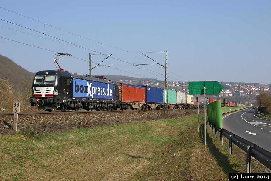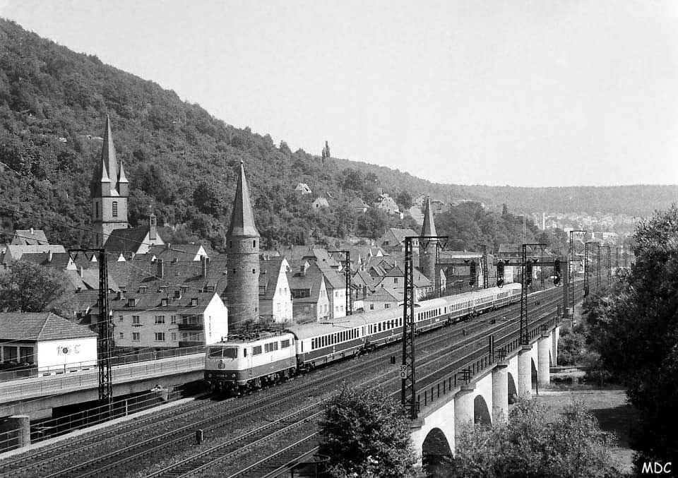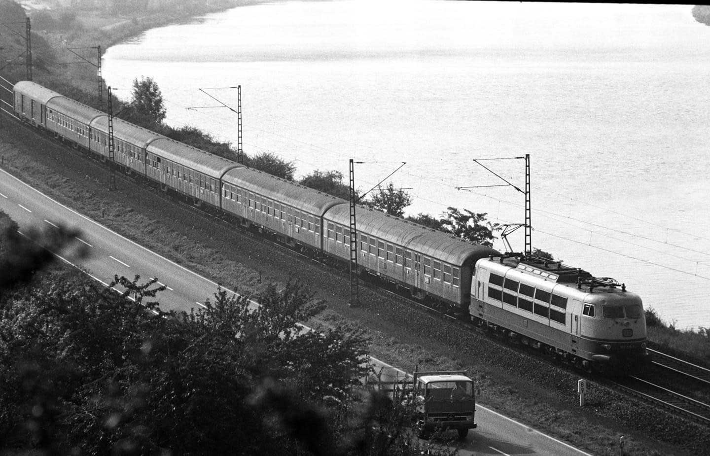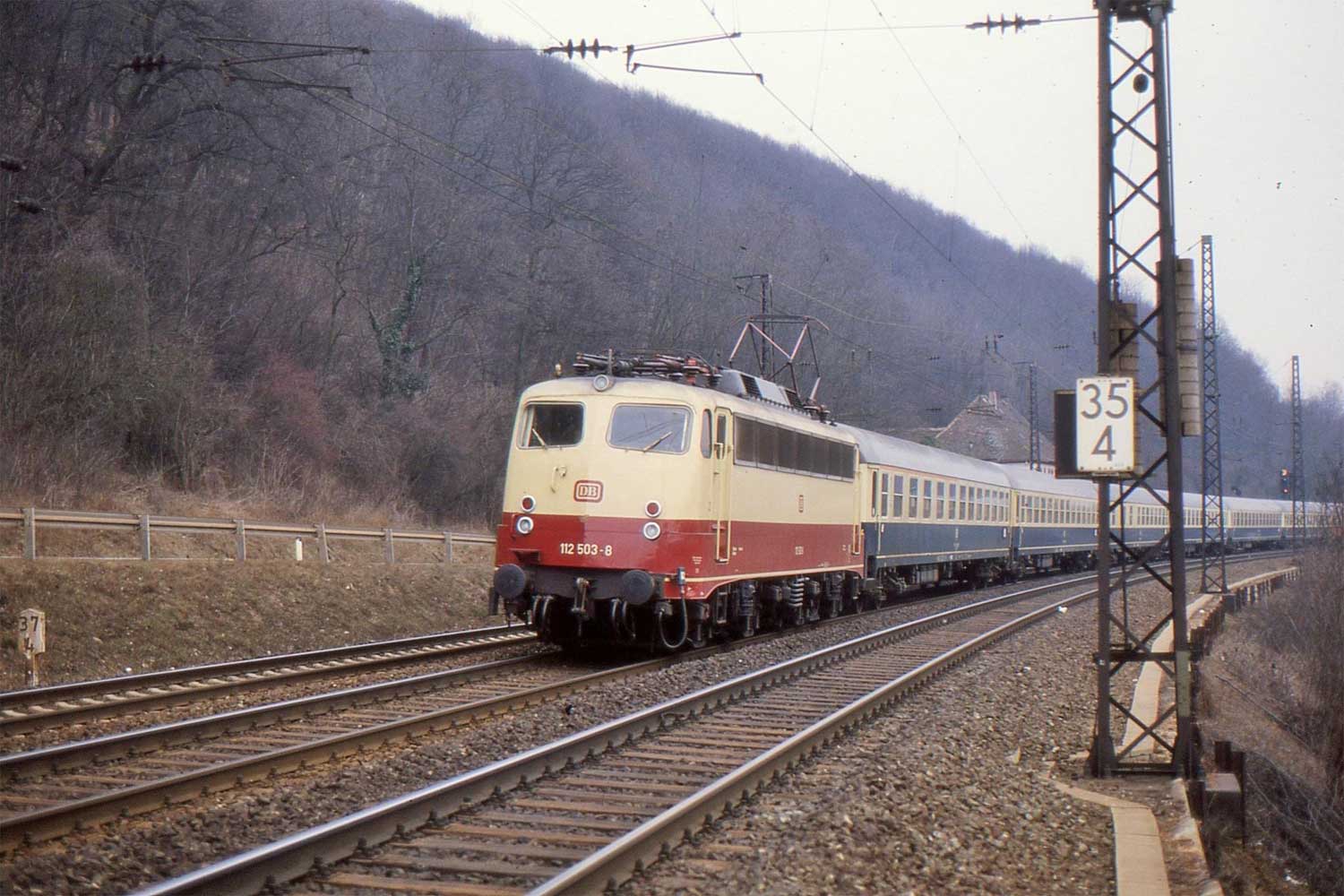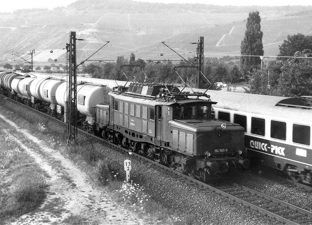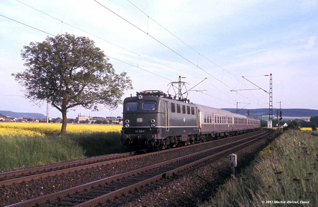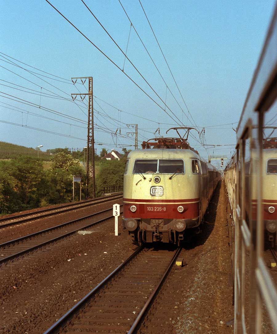 Der Zug mit der 103 194 befindet sich auf der Strecke Flieden 0,0 - Gemünden (Main) 56,338