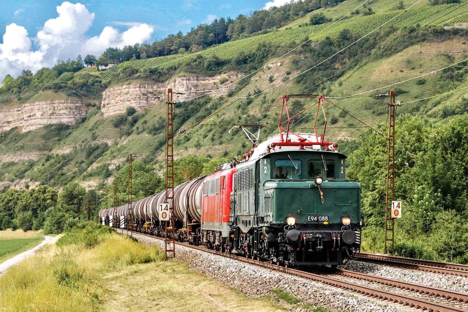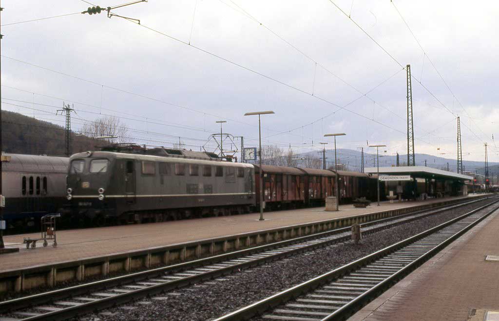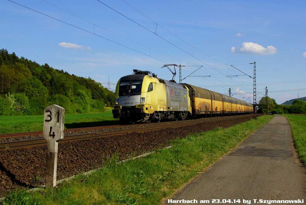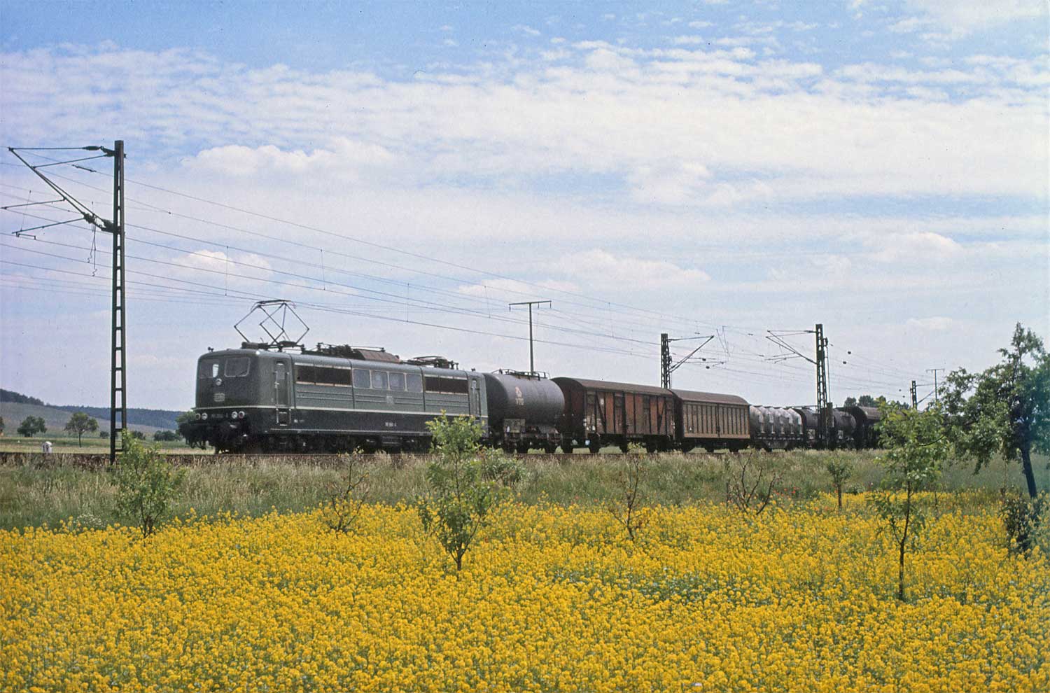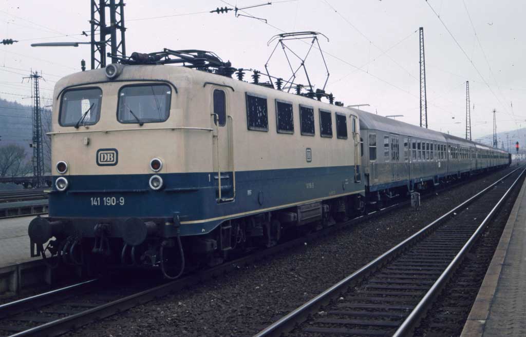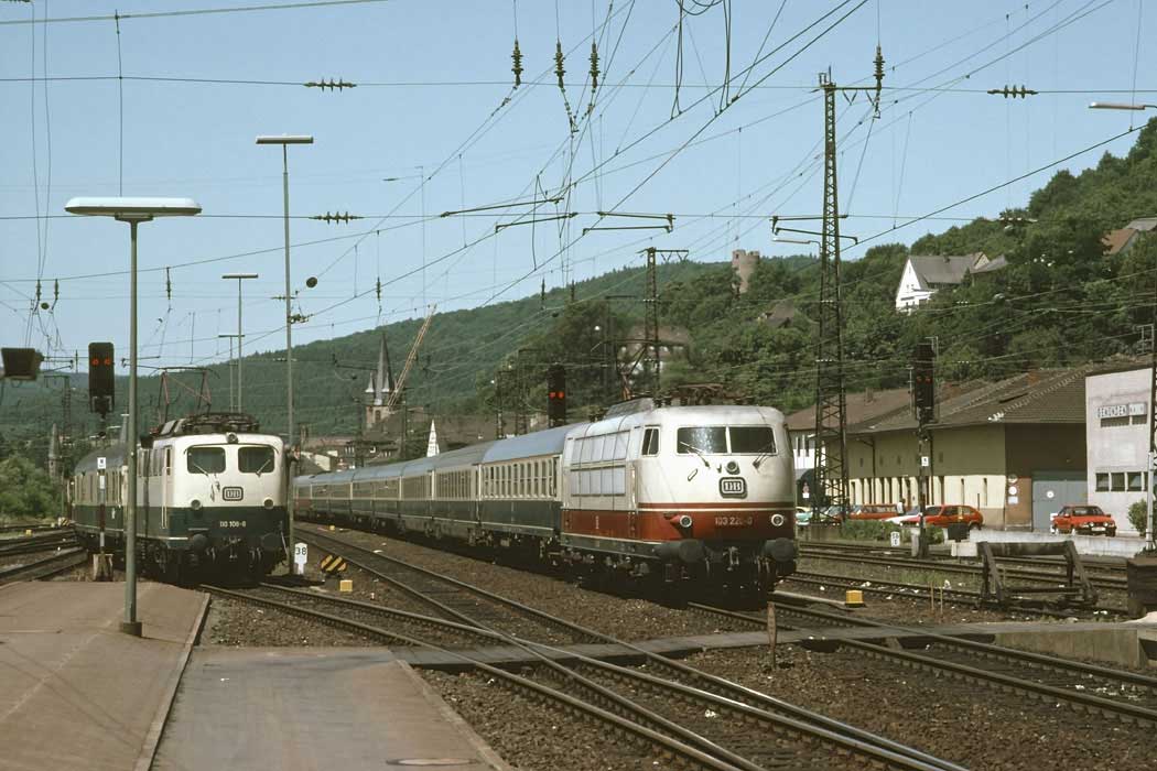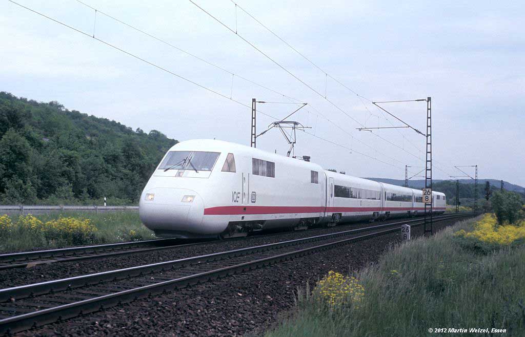 Der Zug mit der 103 194 befindet sich auf der Strecke Flieden 0,0 - Gemünden (Main) 56,338