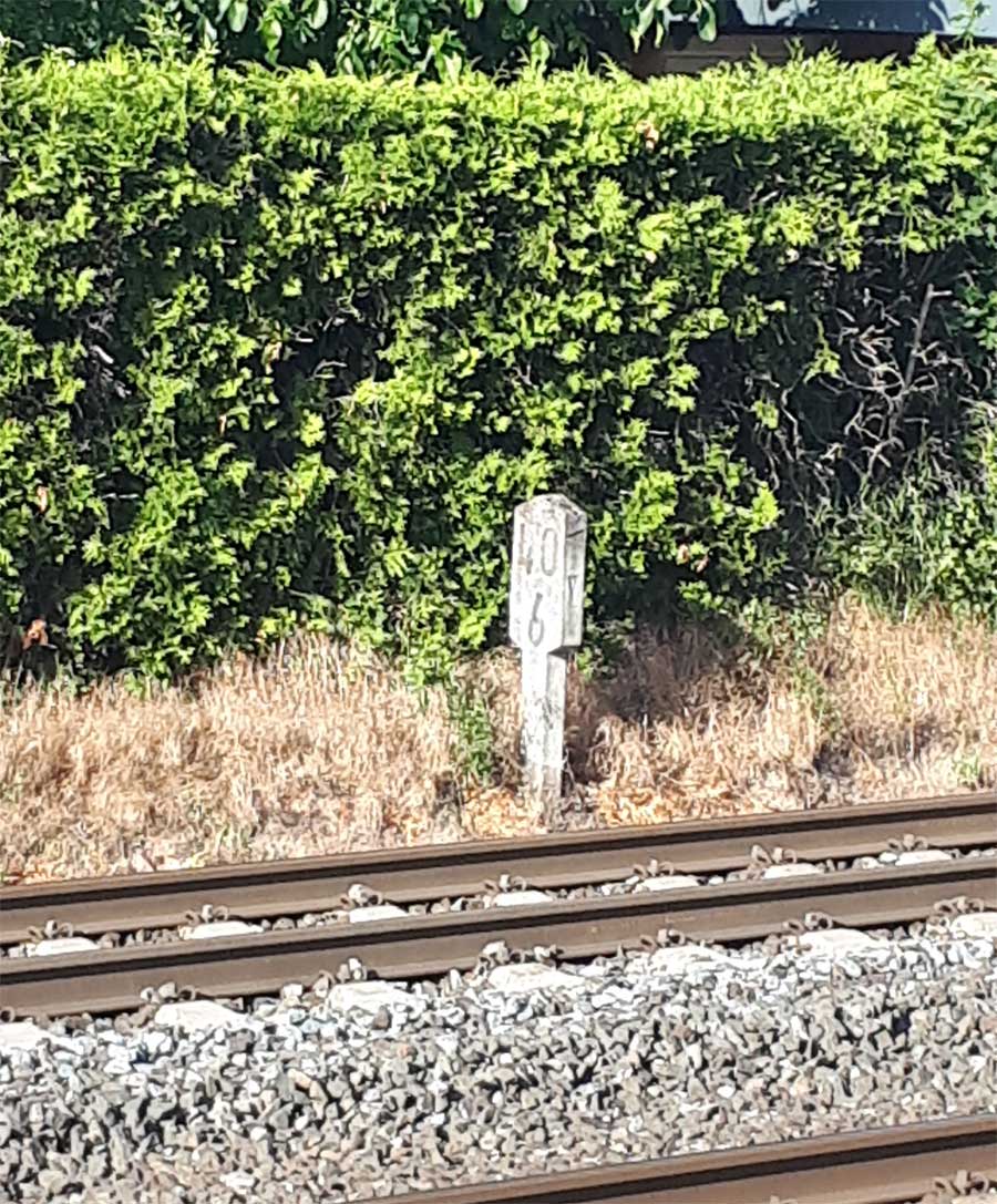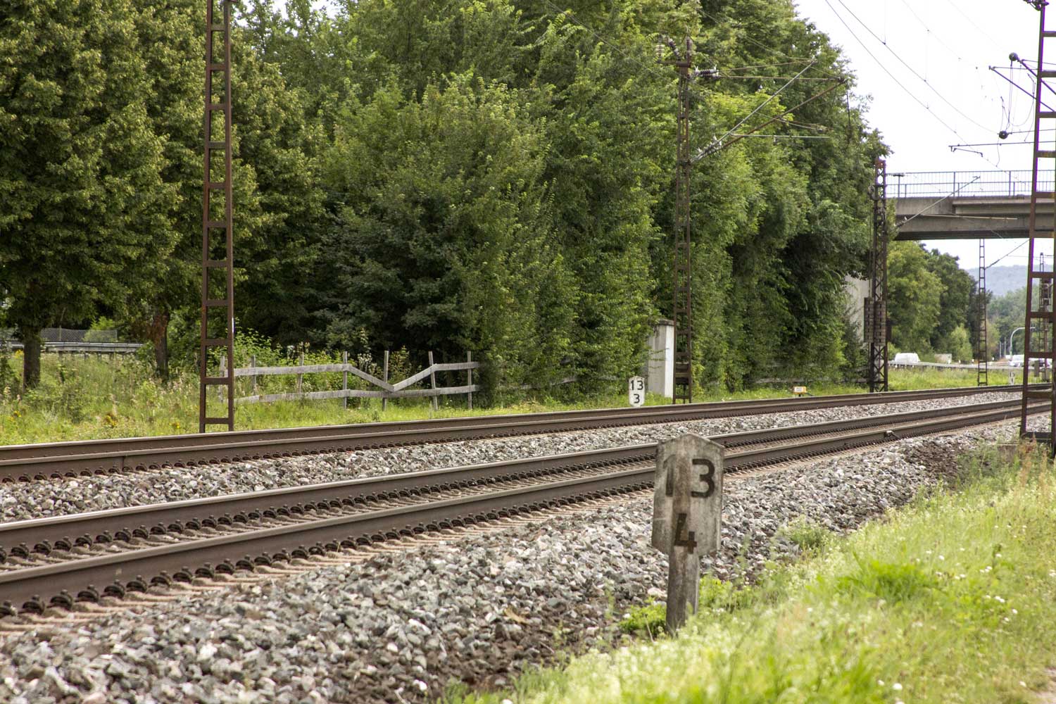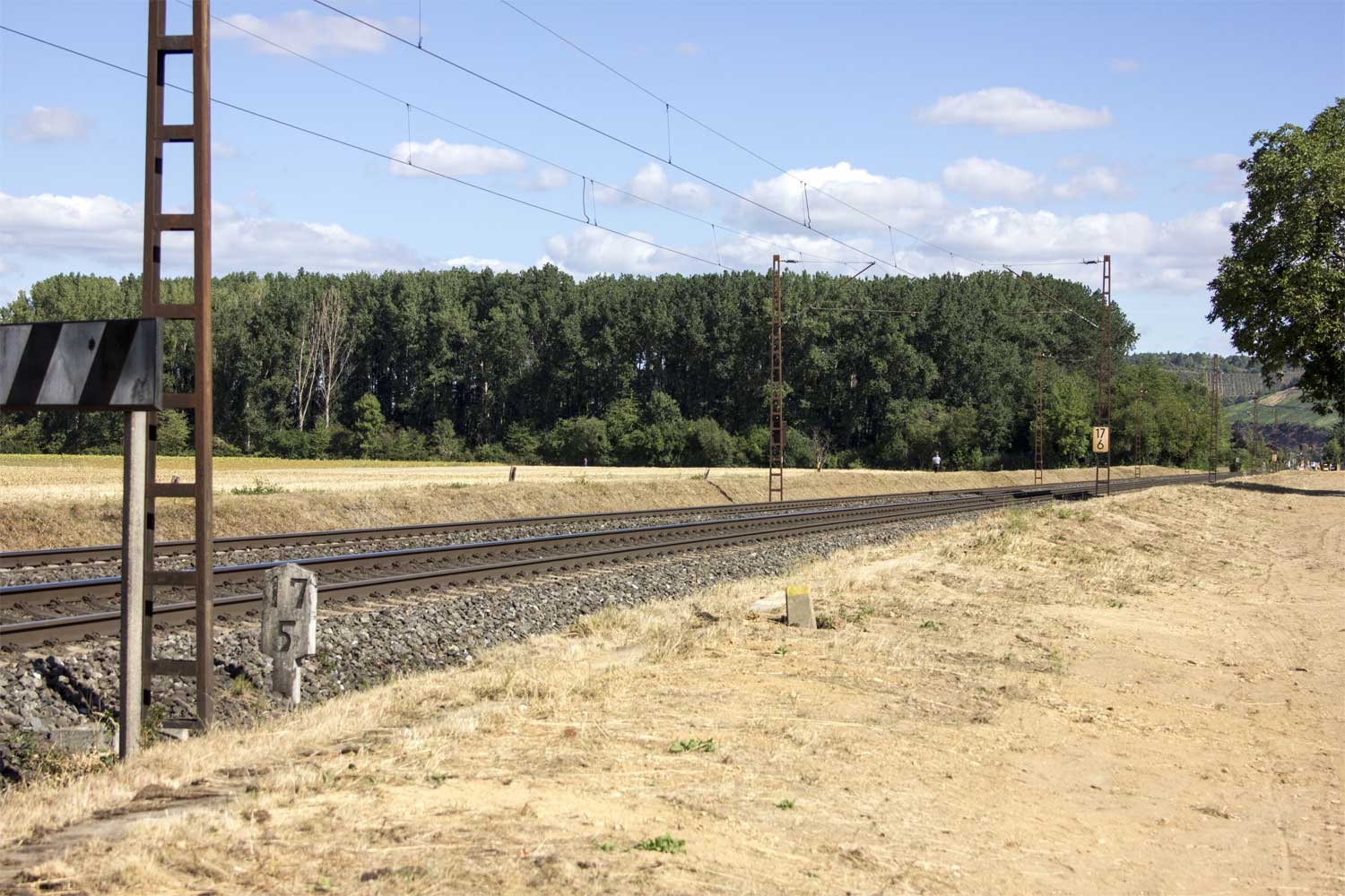 km 42,2 (Stein und Tafel) zwischen Langenprozelten und Lohr Bf - Blick Richtung Aschaffenburg