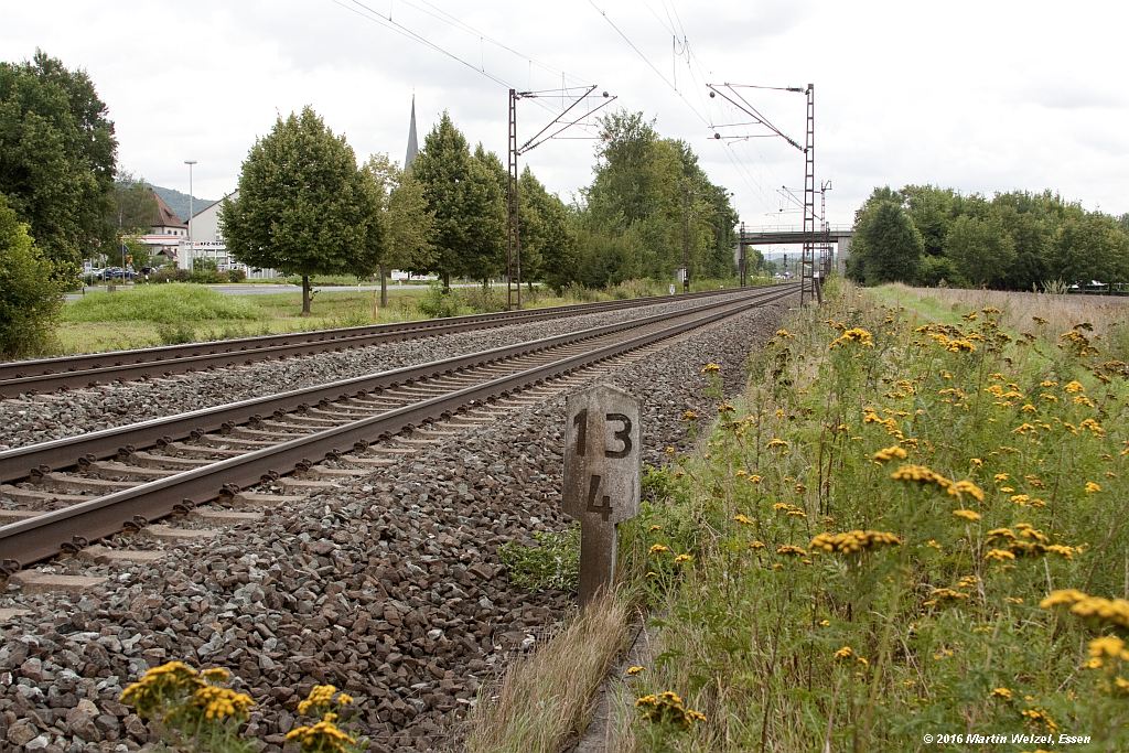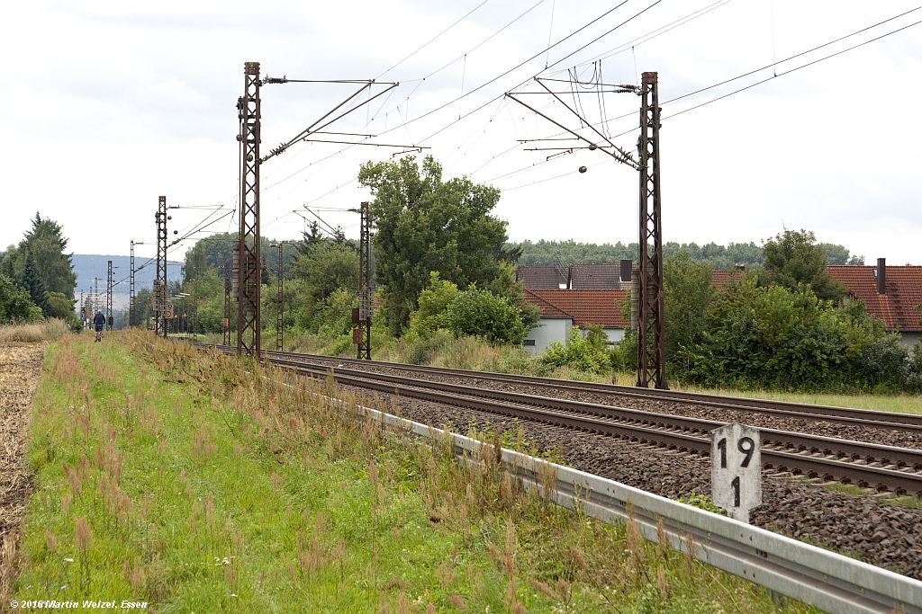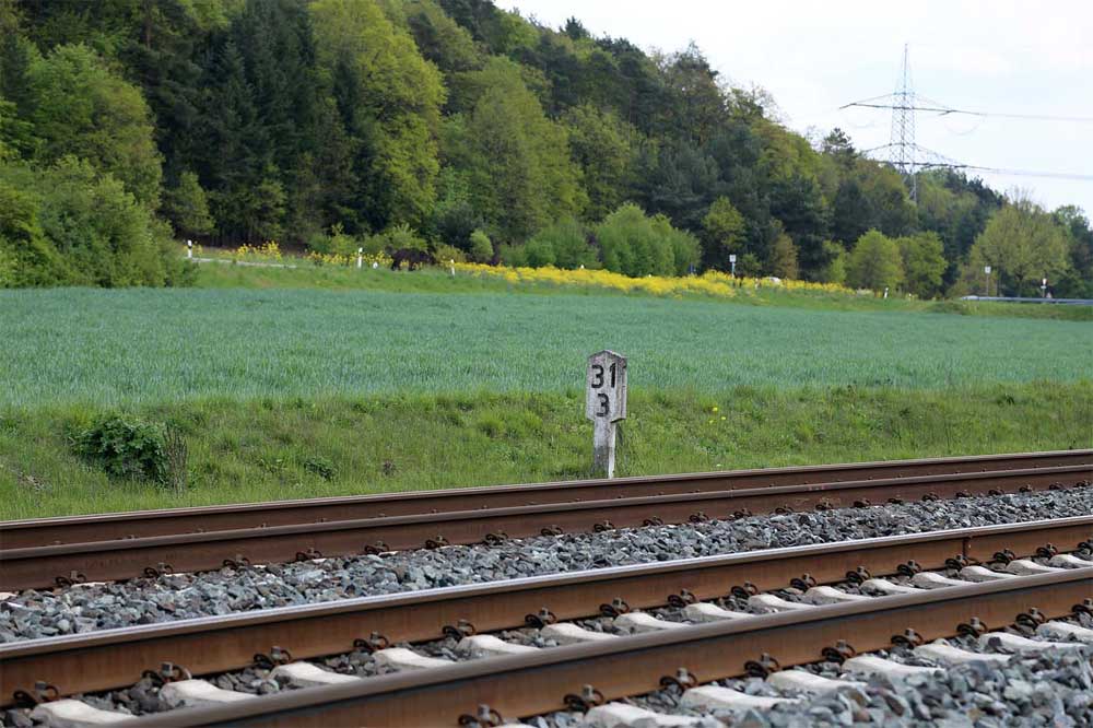 km 42,6 (Stein und Tafel) zwischen Langenprozelten und Lohr Bf - Blick Richtung Aschaffenburg