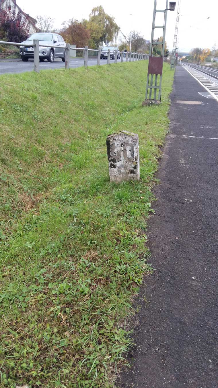 km 44,0 (Stein und Tafeln) zwischen Langenprozelten und Lohr Bf - Blick Richtung Aschaffenburg
