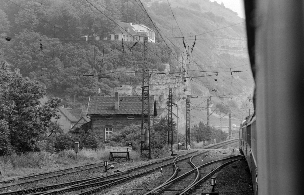 Bei der rechts abgehenden eingleisigen Strecke handelt es sich um die Strecke Gemünden (Main) 0,0 - Bad Kissingen 46,95