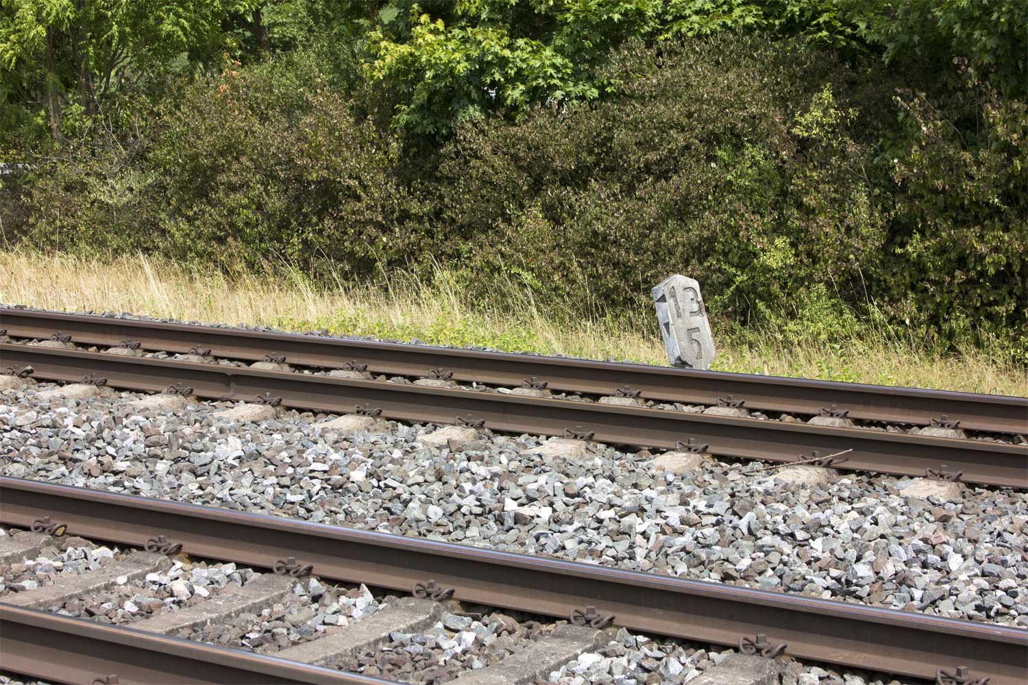 km 52,3 (Stein) und km 52,4 (Tafel) zwischen Lohr Bf und Partenstein - Blick Richtung Aschaffenburg