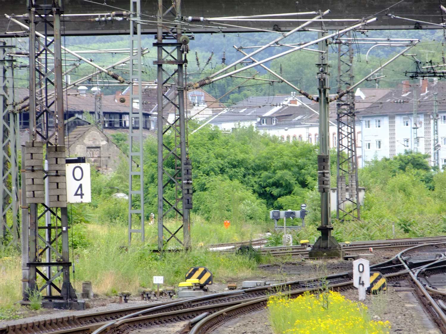 km 89,0 und km 89,1 in Aschaffenburg Hbf - Blick Richtung Würzburg