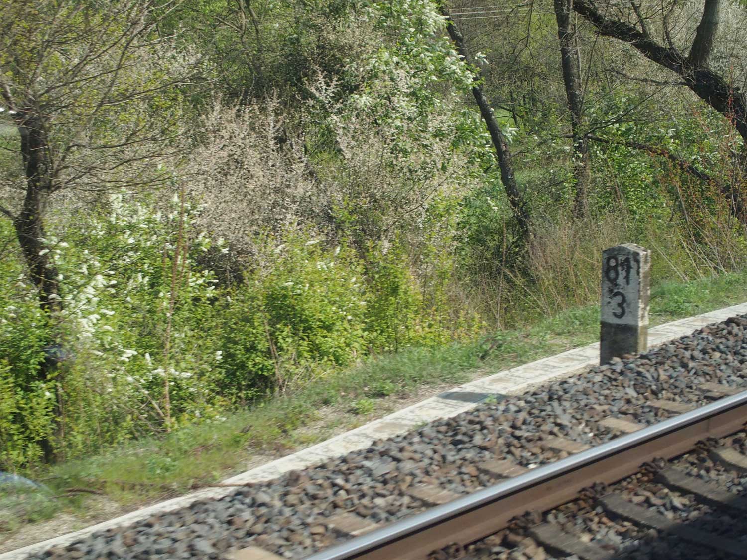 km 84,8; km 85,0; km 85,2 und km 85,4 zwischen Hösbach und Aschaffenburg Hbf - Blick Richtung Aschaffenburg