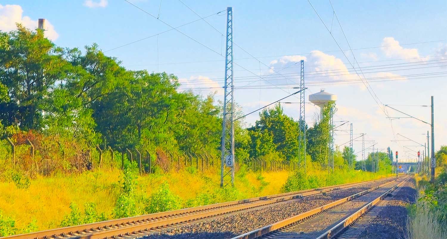 km 6,6 in Wülknitz - Blick Richtung Abzw Zeithain Bogendreieck