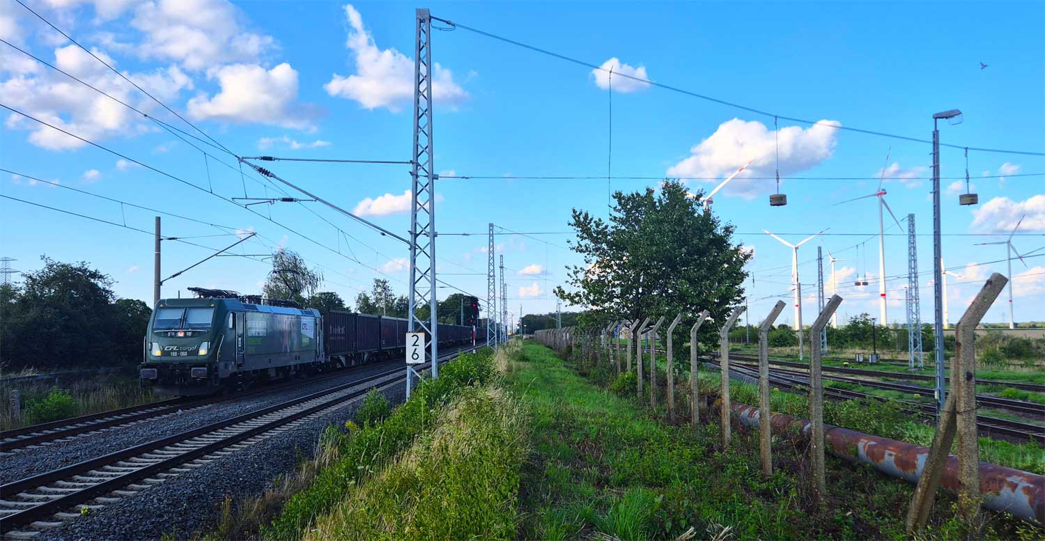 km 1,0 in Zeithain - Captrain 185-CL-003 + BR 145