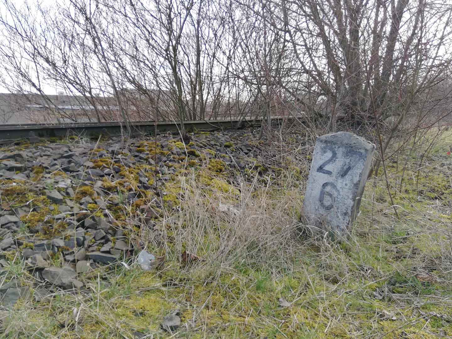 | Alzey | 30,90 | km 8,98 der Strecke Langmeil (Pfalz) 0,03 - Marnheim 14,143 - Kirchheimbolanden 19,55 - ehemalige Landesgrenze Pfalz/Hessen km 25,73 = km 0,0 - Alzey 8,98 - Armsheim 16,67 - Mainz Hbf 50,07 |