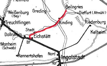 | Beilngries | 46,34 | km 27,05 der Strecke Neumarkt (Oberpf) 0,0 - Beilngries 27,05 - Dietfurt (Altmühl) 37,027 |