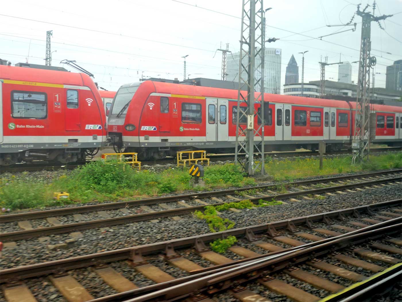 km 1,4 (Tafel links) in Frankfurt (Main) Hbf 423 919, 433 919, 433 419, 423 419 und eine weitere Einheit