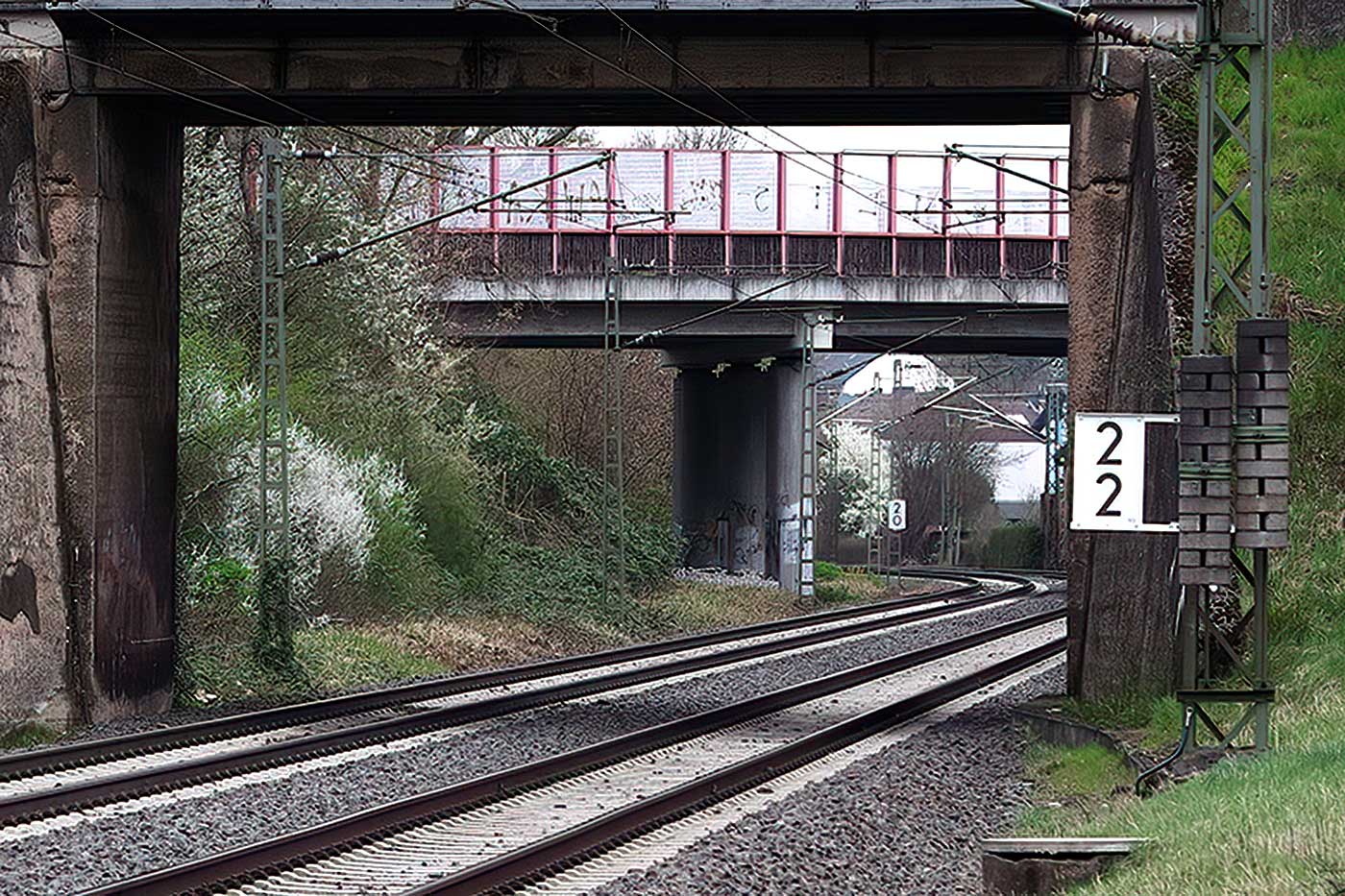 km 0,1 und km 0,2 am Abzw Hanau Rauschwald - Blick Richtung Großkrotzenburg