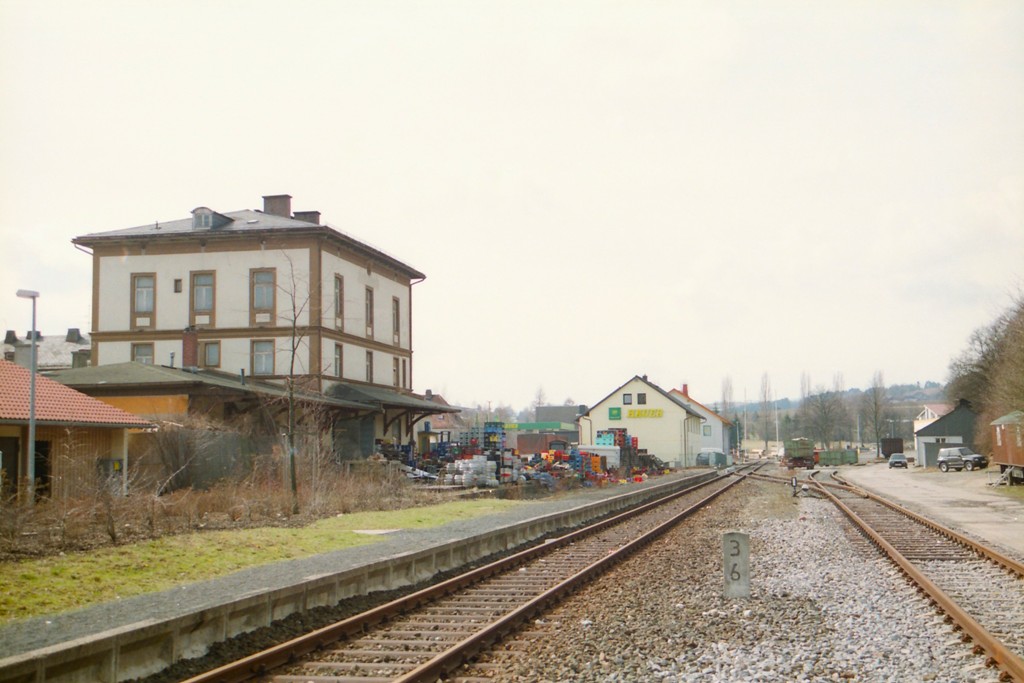 | km 0,0 der Strecke Holenbrunn 0,0 - Selb Stadt 22,8 = km 3,6 - Selb-Plößberg 0,0 | ||