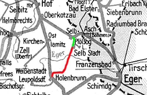 Selb-Plößberg 0,0 - Selb Stadt 3,6 = km 22,8 - Holenbrunn 0,0