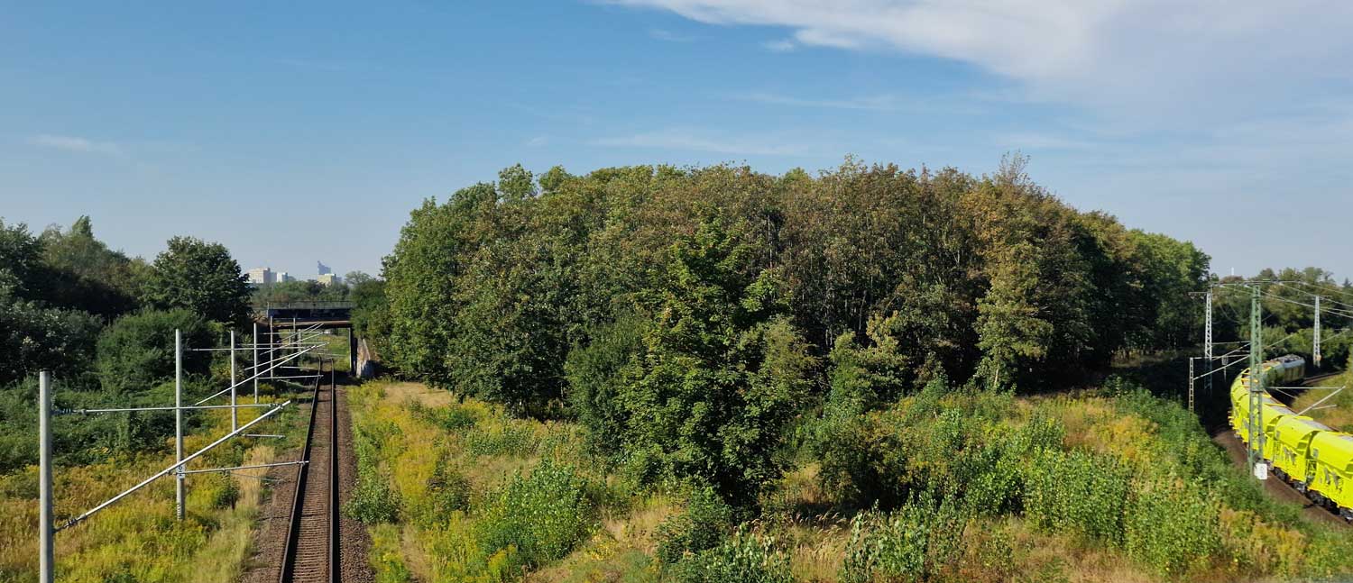 km 6,2 (rechts) zwischen Leipzig-Thekla und Leipzig-Heiterblick - Blick Richtung Leipzig Hbf