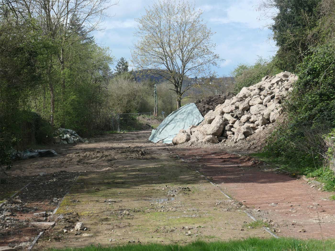 Erdarbeiten am Nordwestportal des Erpelerley-Tunnels - Blick Richtung Abzw Kripp