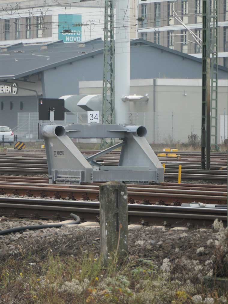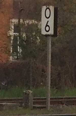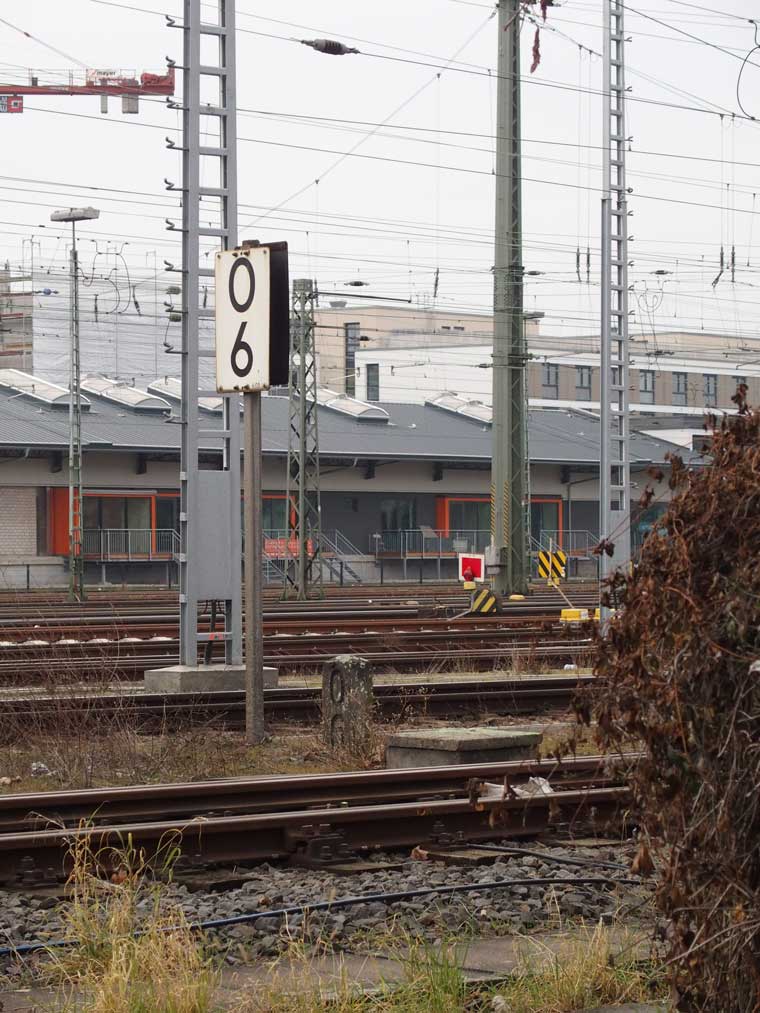 km 0,6 (Tafel und Stein) in Mainz Hbf - Blick Richtung Wiesbaden