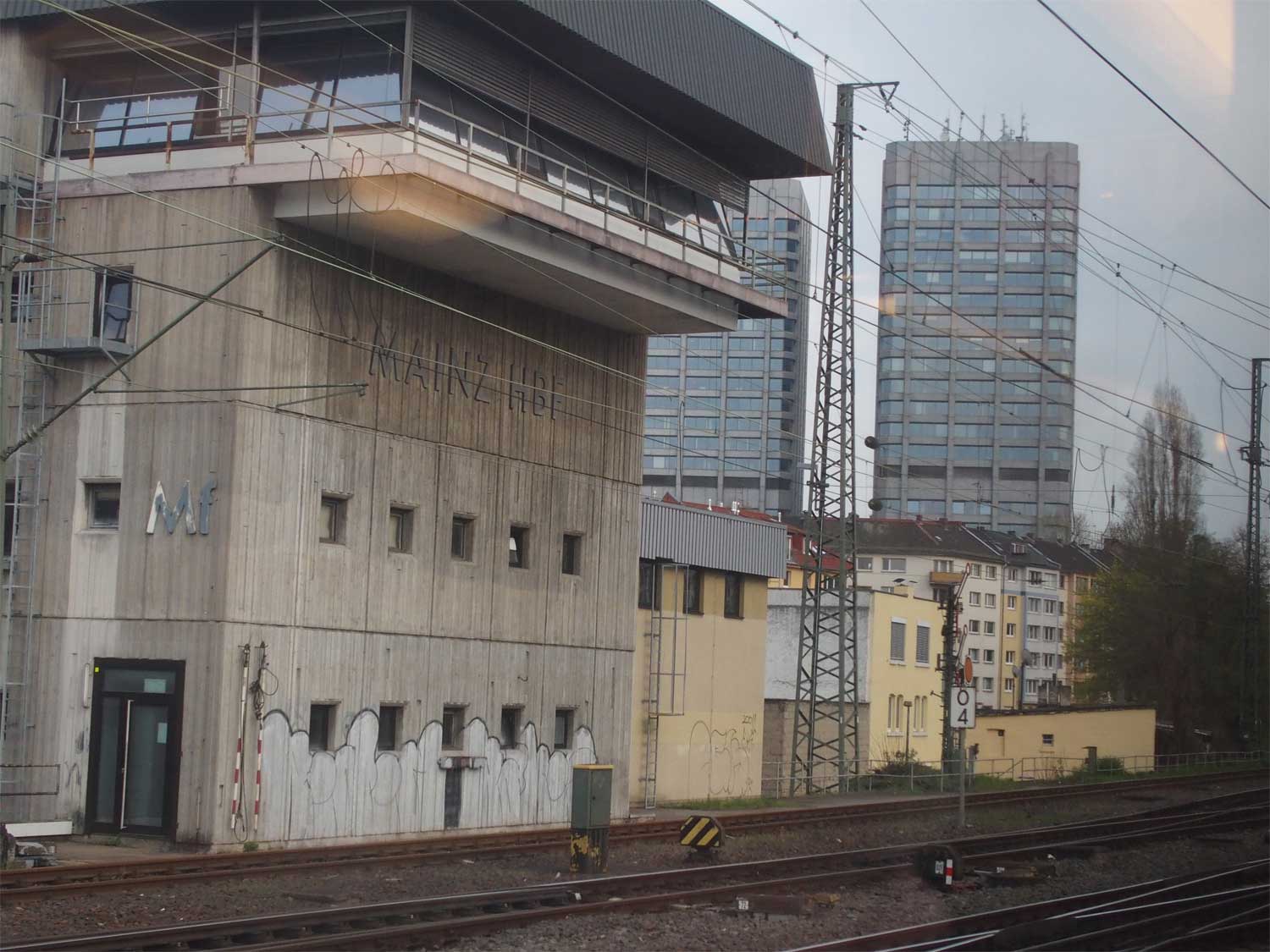km 0,4 in Mainz Hbf mit Stellwerk Mf - Blick Richtung Mainz