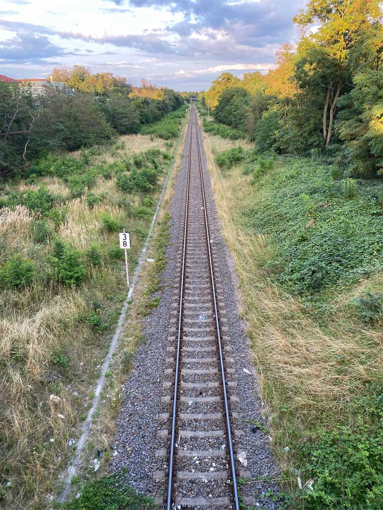 km 4,4 in Leuna - Blick Richtung Leipzig-Leutzsch Foto: Dietmar Levie, 07.11.2022