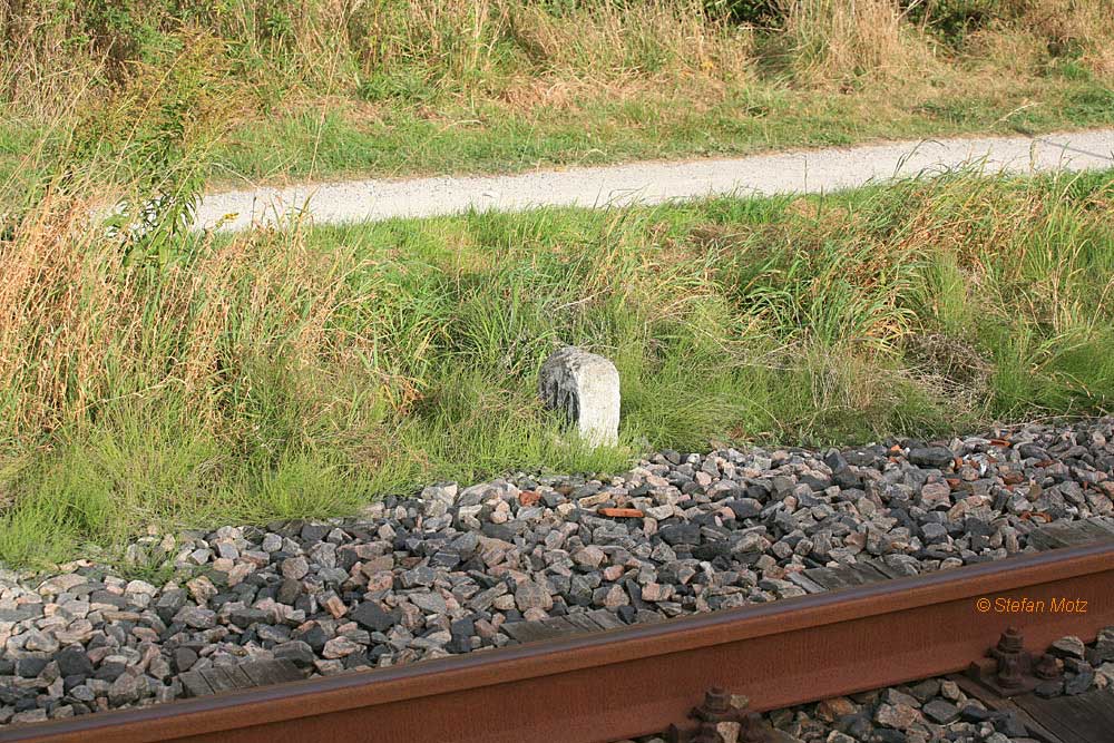 km 13,7 (Stein) und km 13,8 (Tafel) gehören zur Strecke Kiel Hbf 0,07 - Eckernförde 31,10 - Flensburg 80,64 (1020)