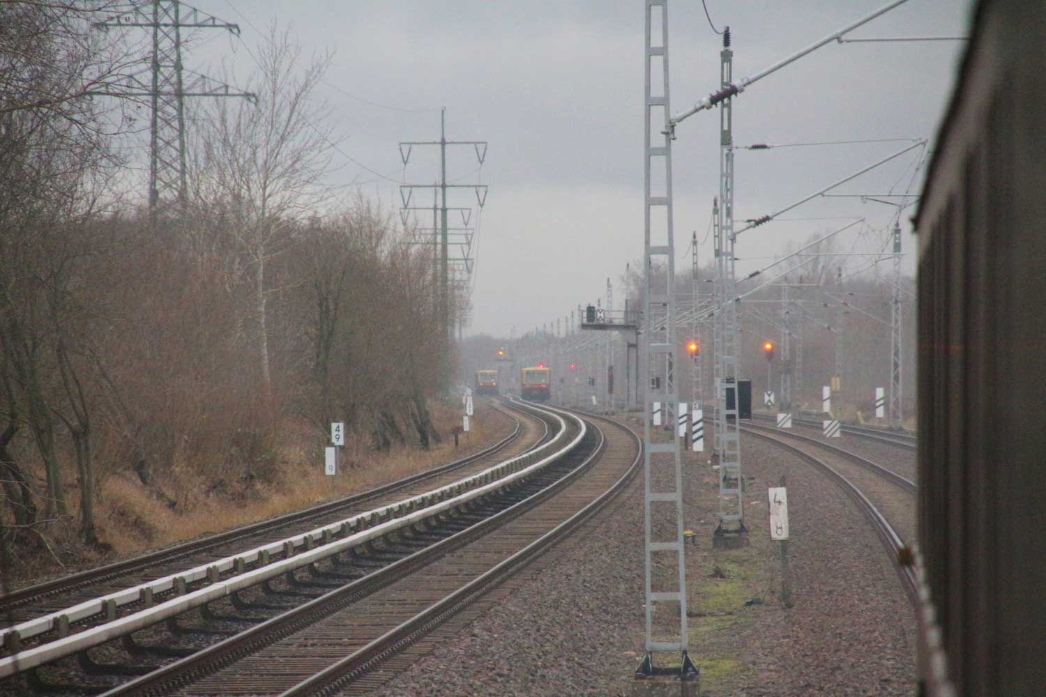 Im Vordergrund die Gleise des Berliner Außenringes (BAR)