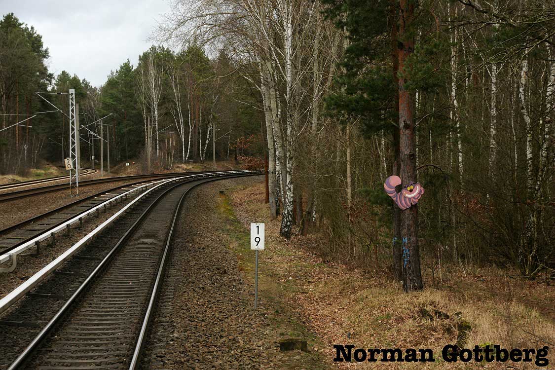 Über Jahre grinst mich diese Katze an, wenn man von Hohen Neuendorf nach Bergfelde fährt. Ob es ein Streich von Waldwanderern ist oder gar vom Förster, um uns zu erschrecken?