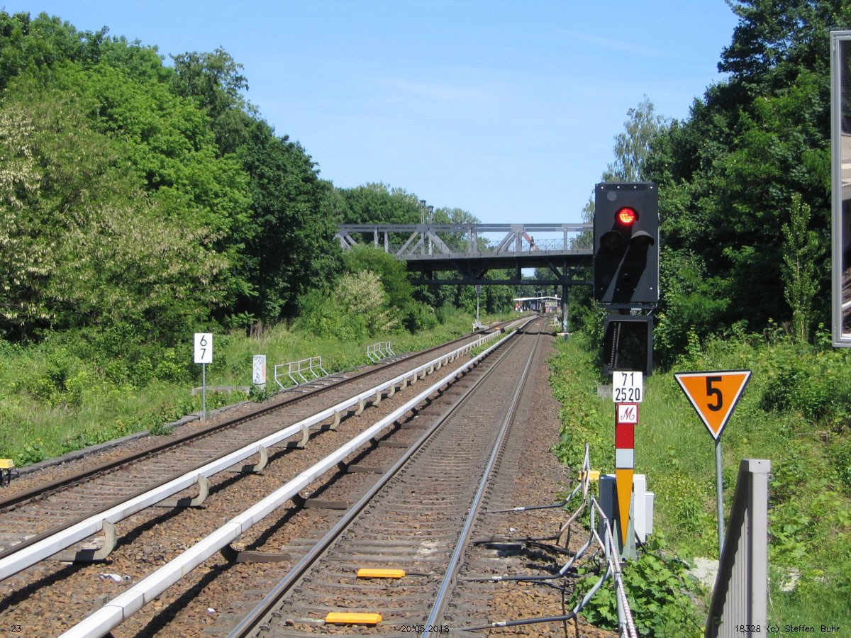 Blick Richtung Berlin Links das ehemalige Gleis der Stammbahn