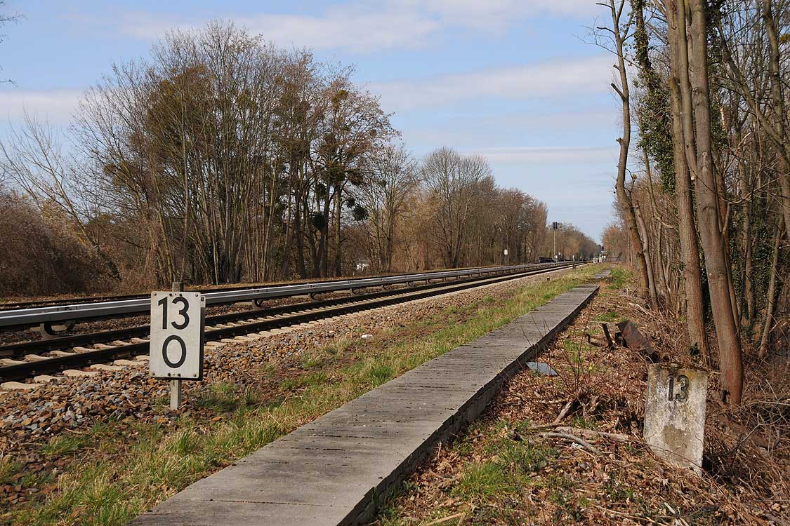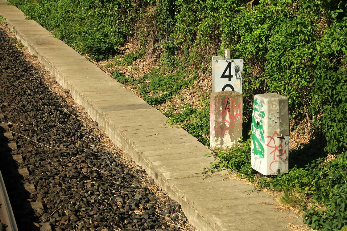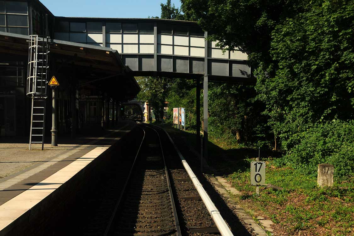 km 17,0 (Tafel) und km 17,1 (Stein) in Nikolassee (Wannseebahn) - Blick Richtung