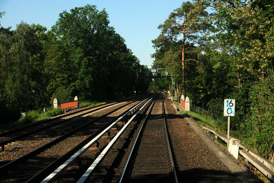 km 15,5 zwischen Schlachtensee und Nikolassee (Wannseebahn) - Blick Richtung