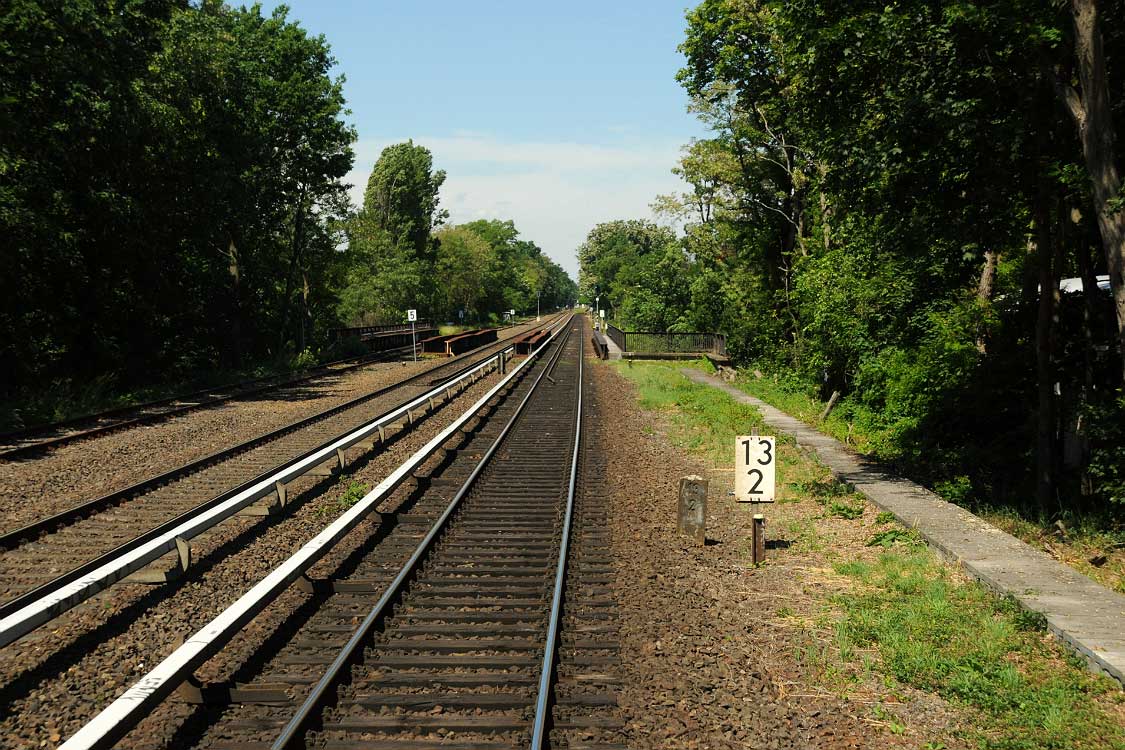 km 17,0 (Tafel und Stein) in Nikolassee (Wannseebahn) - Blick Richtung
