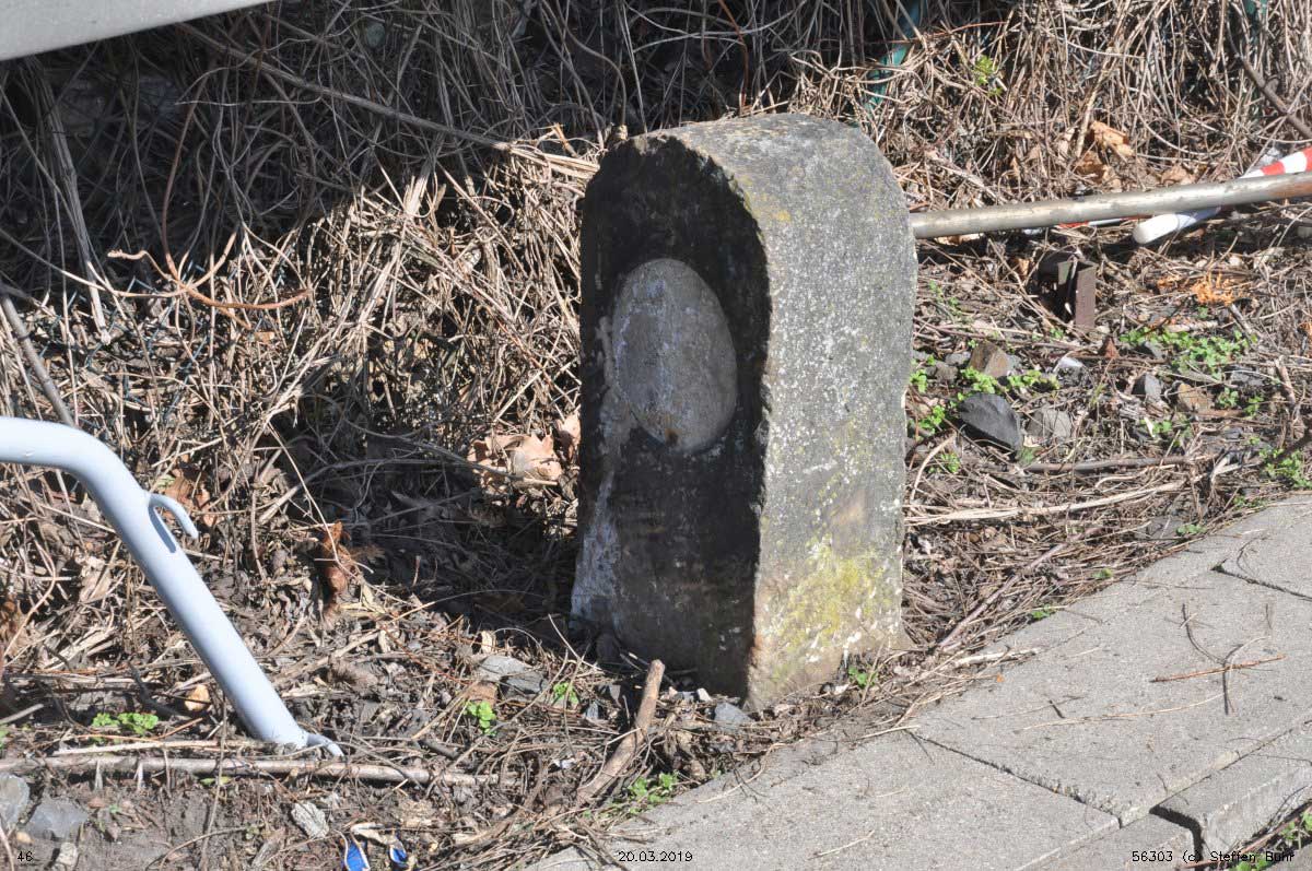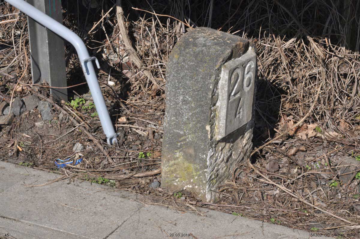 km 26,4 zwischen Nowawes und Potsdam Wahrscheinlich ein alter Stein der Kilometrierung von 1927 Foto: Steffen Buhr, 20.03.2019
