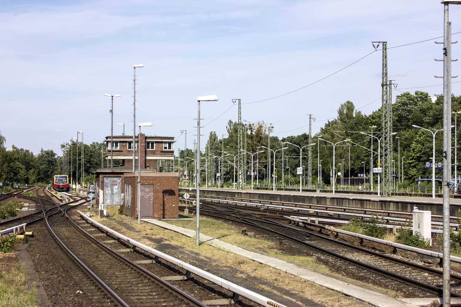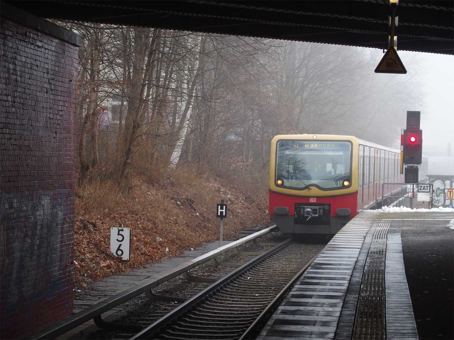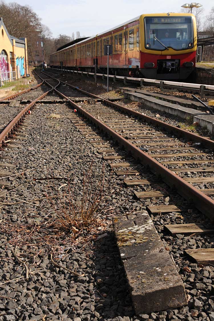 Wannseebahn. Gleichzeitig ist das der Endpunkt für die Nordsüd-S-Bahn (km 7,67).