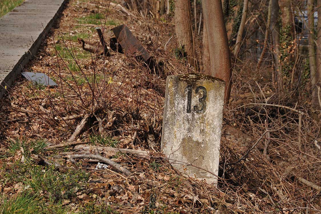 km 12,3 (Stein) und km 12,4 (Tafel) zwischen