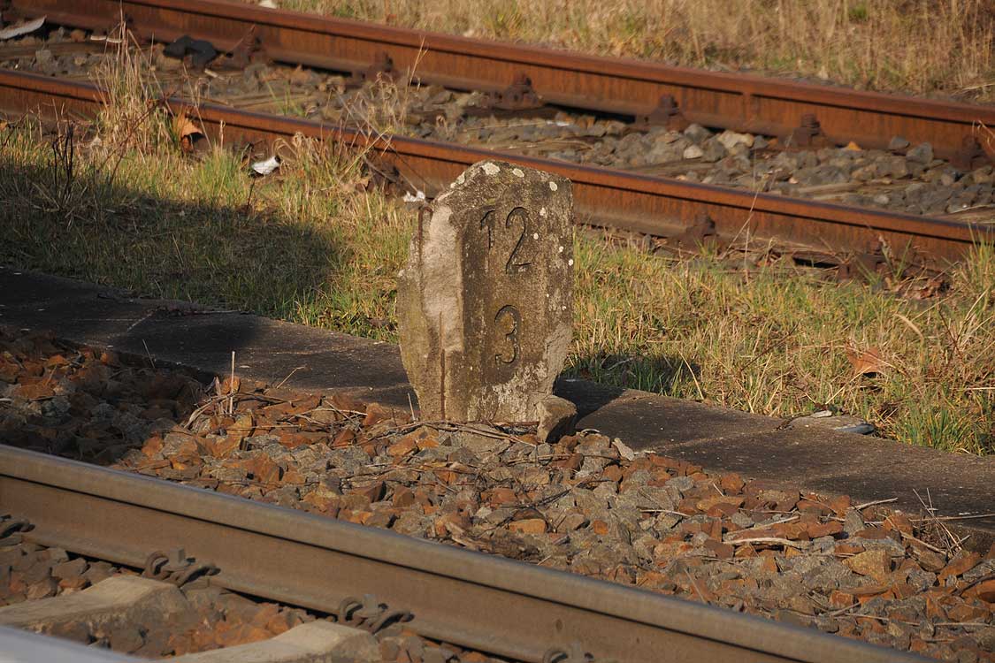 km 16,0 (Tafel und Stein) zwischen Schlachtensee und Nikolassee (Wannseebahn)