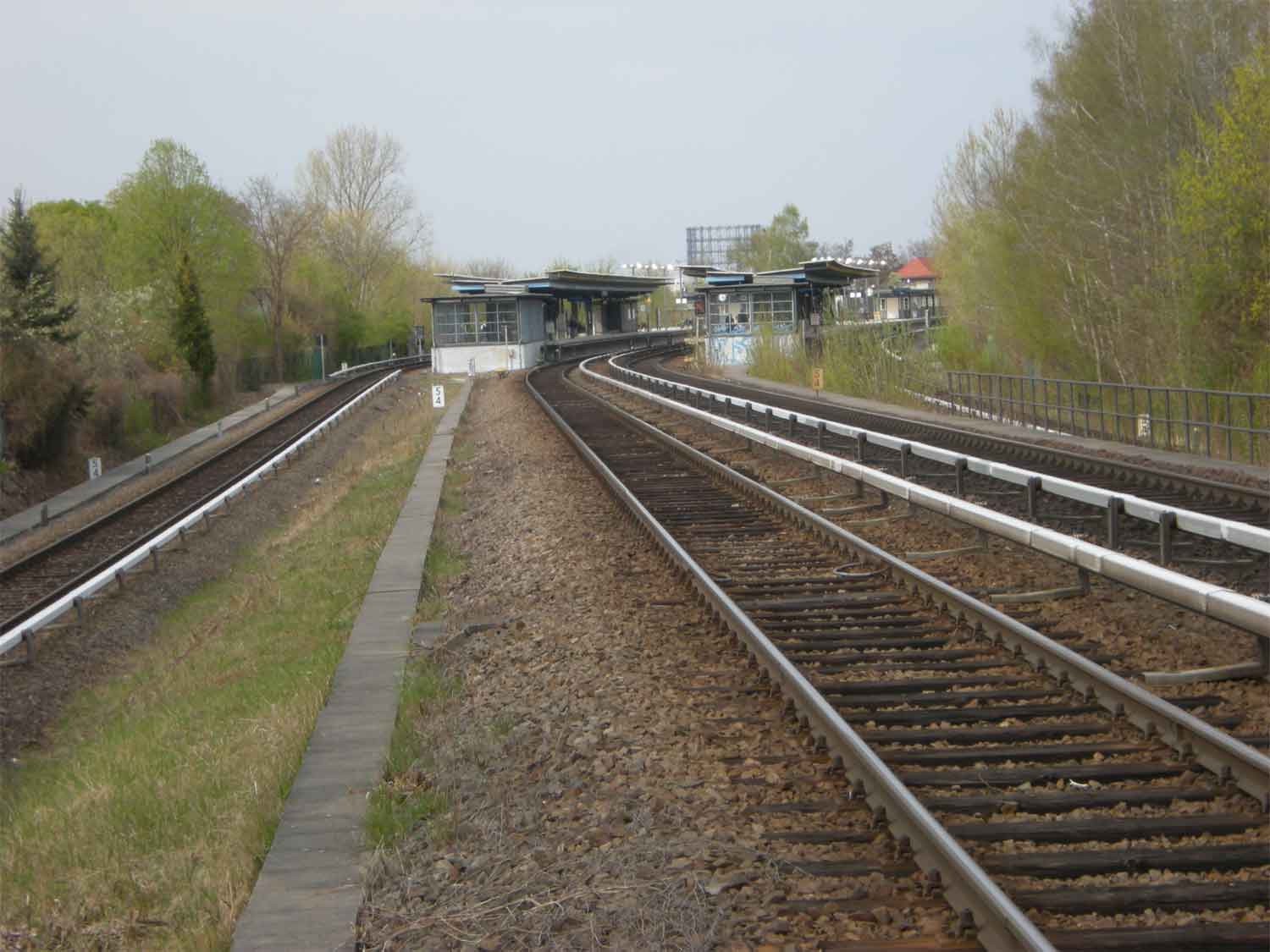 km 5,6 (Richtungsgleis, links unten) in Berlin Priesterweg - Blick Richtung Berlin