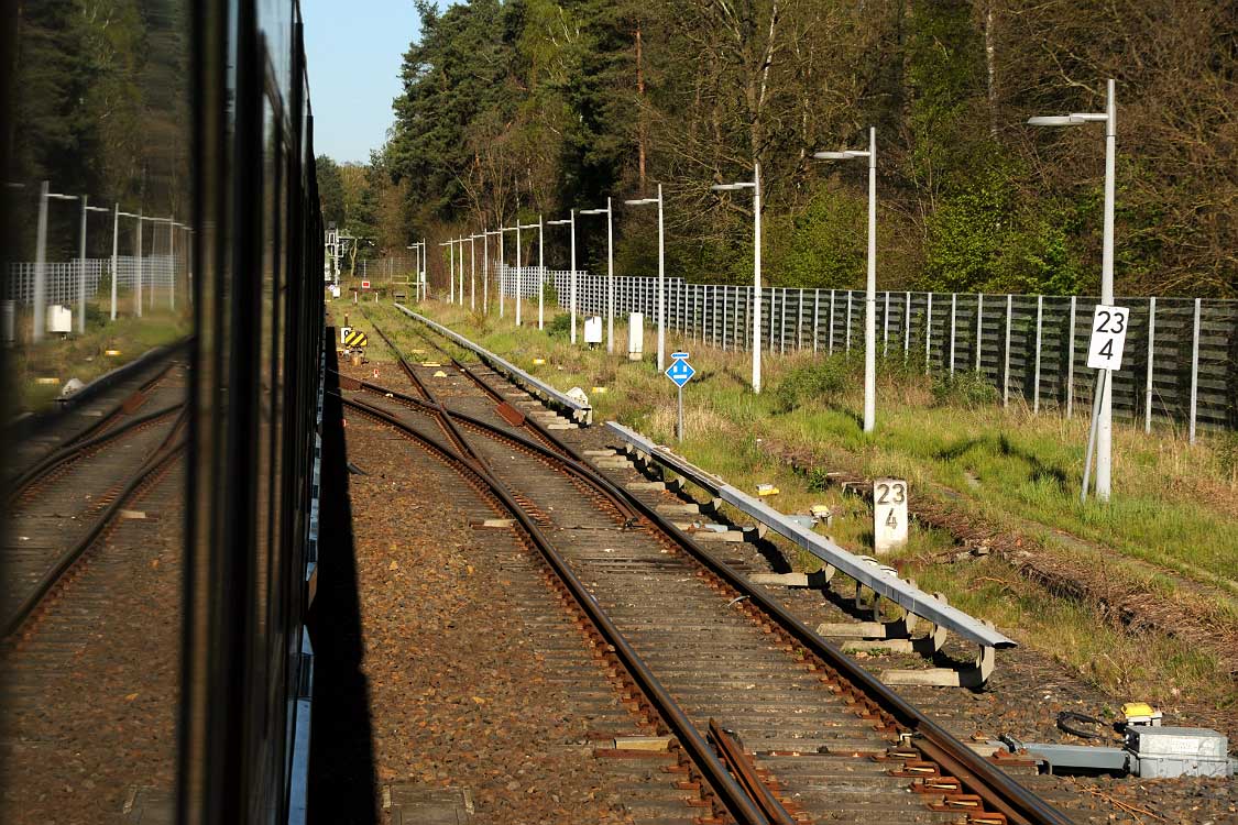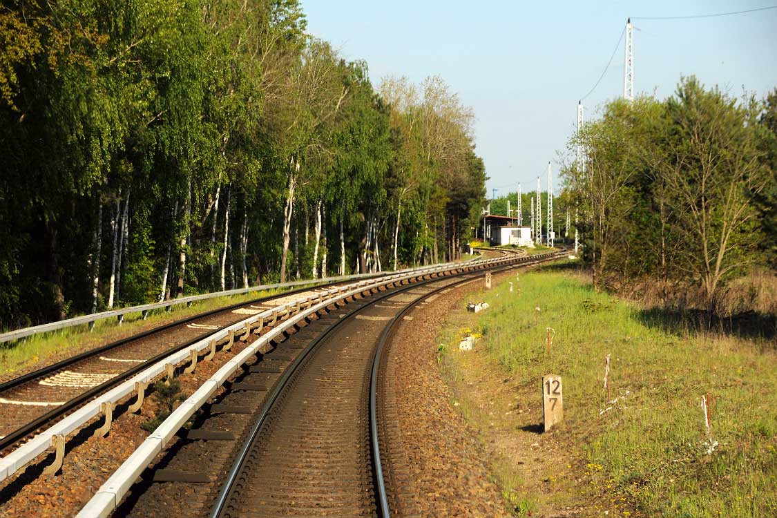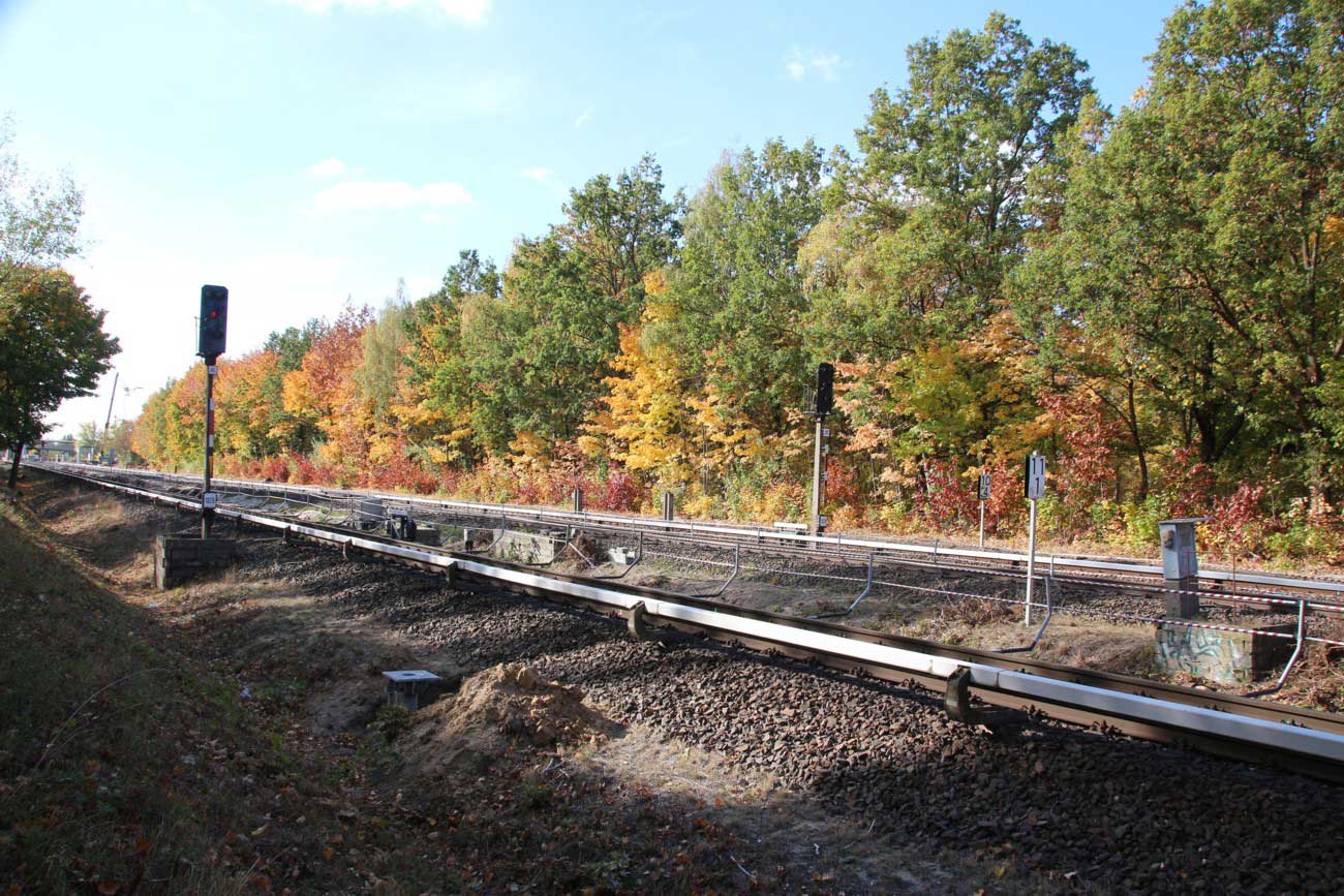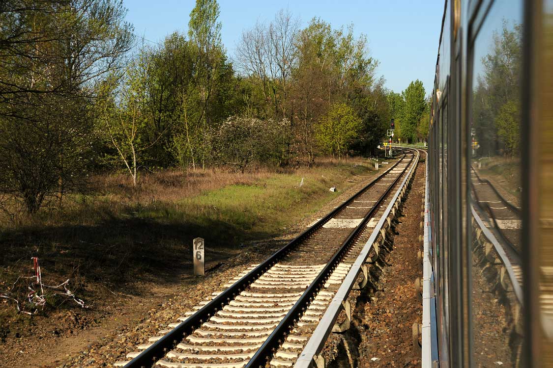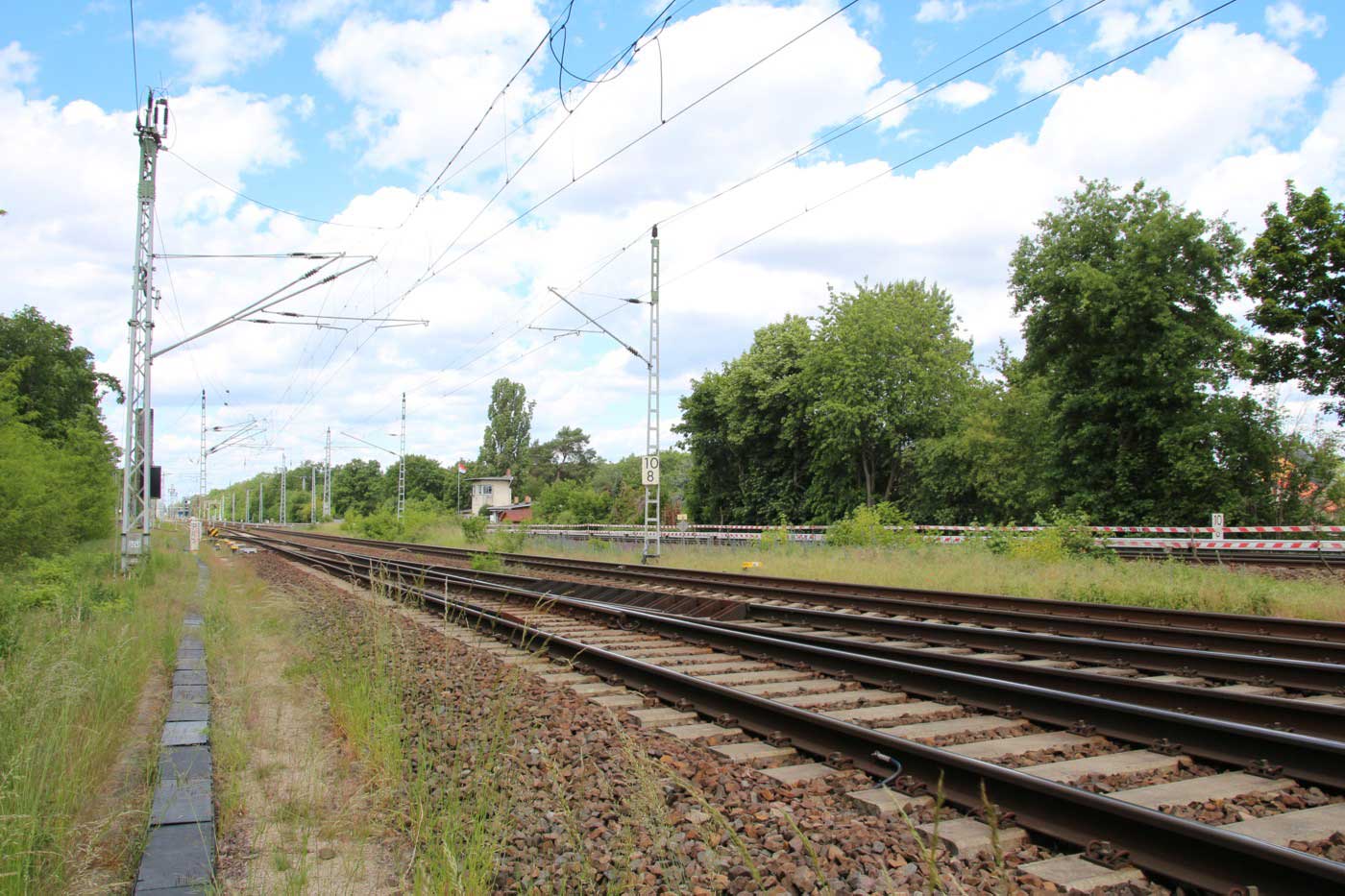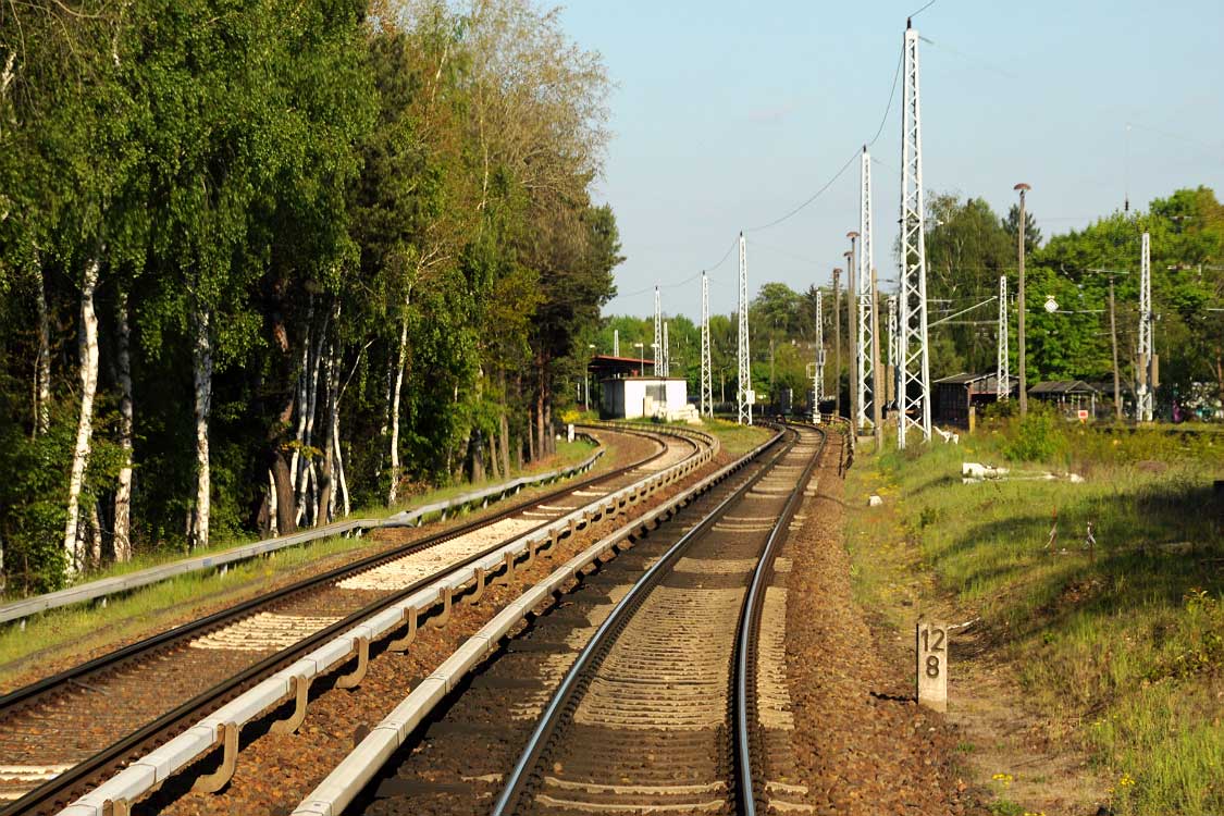 Mittig die beiden Gleise der Schlesischen Bahn mit km 10,2