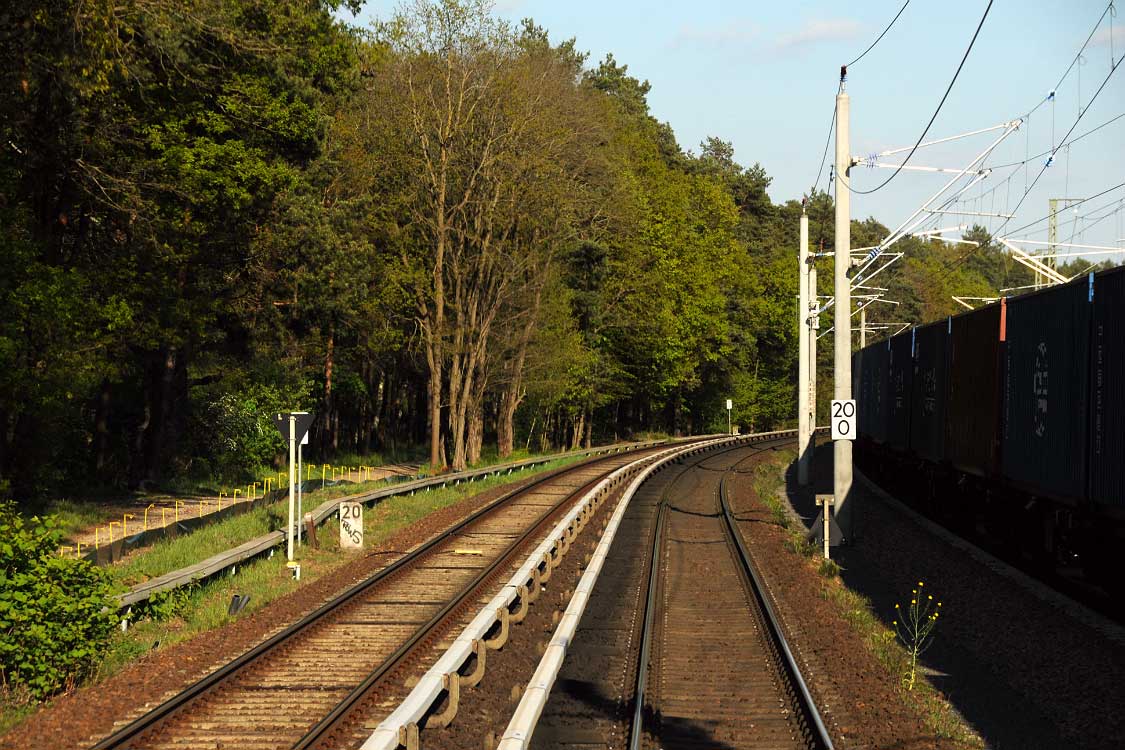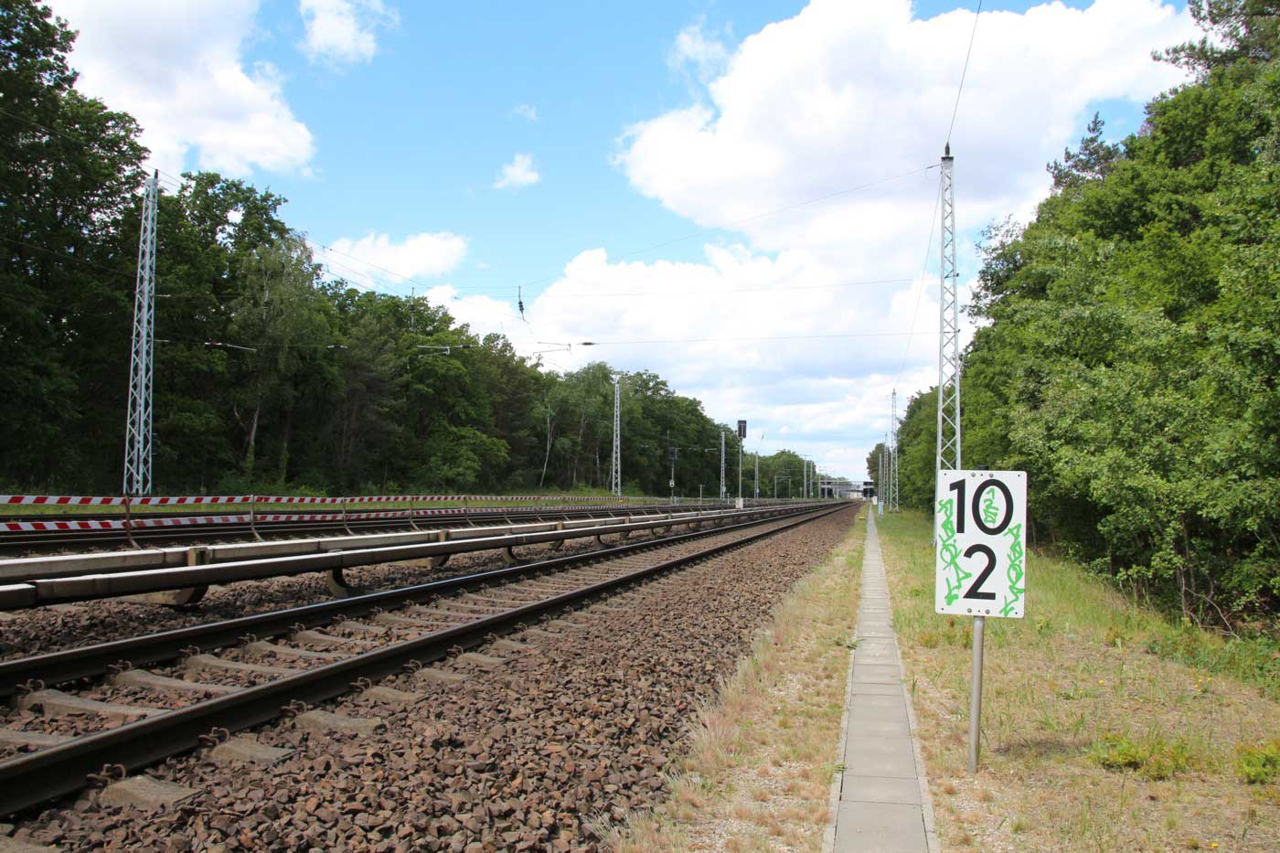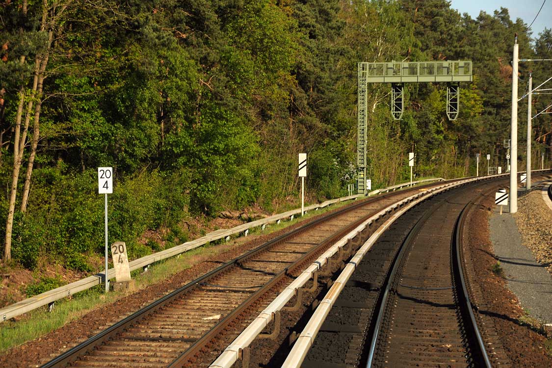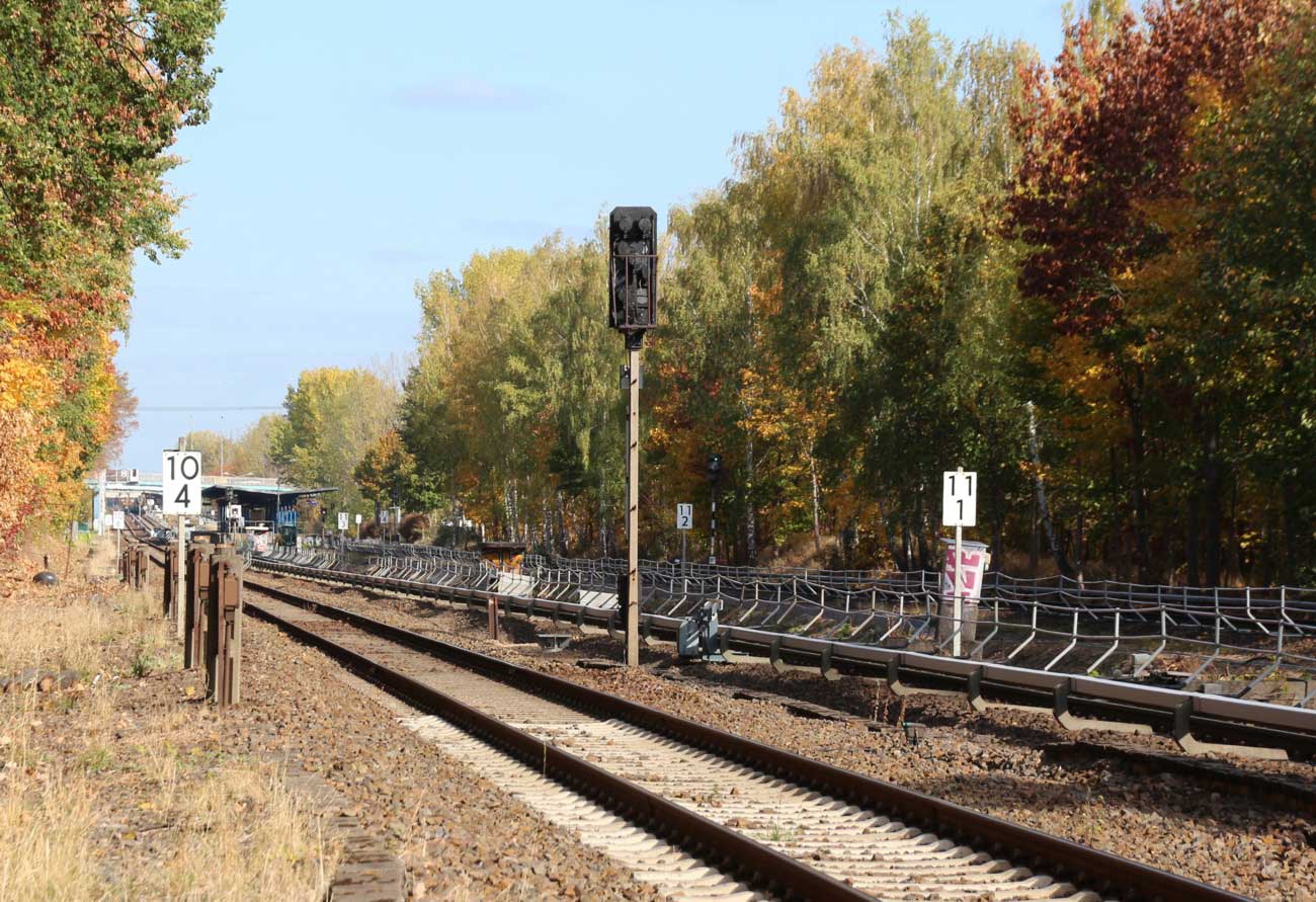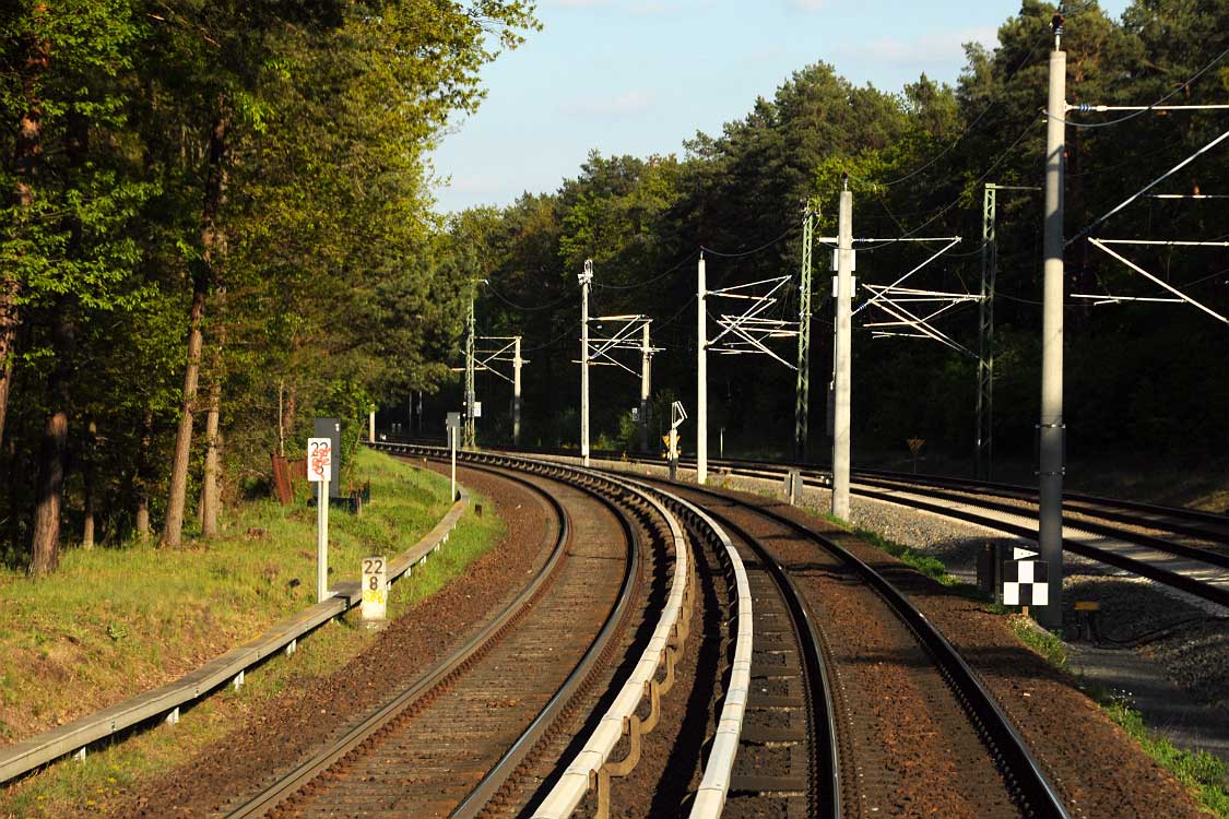 Mittig die beiden Gleise der Schlesischen Bahn mit km 10,2