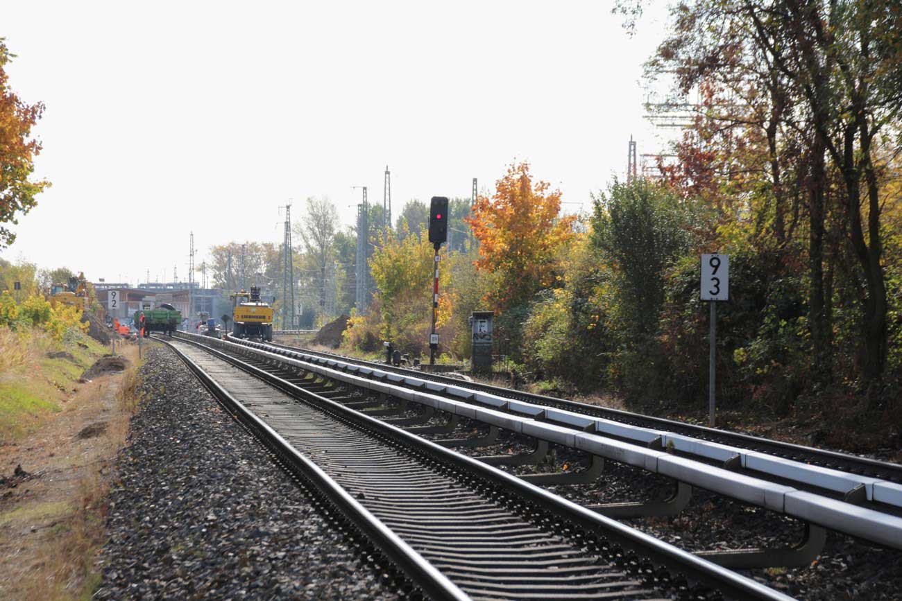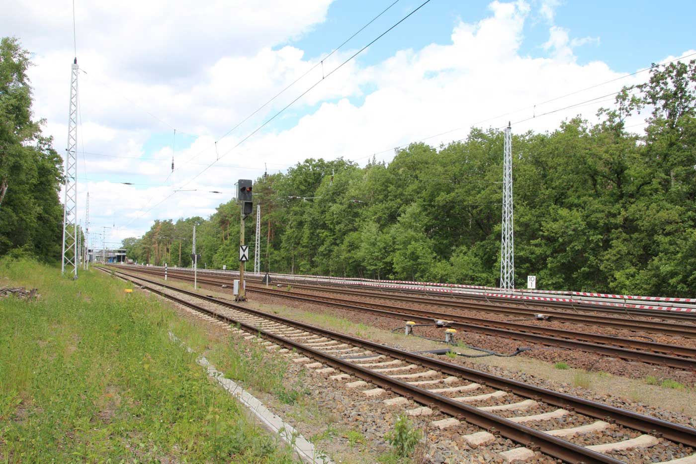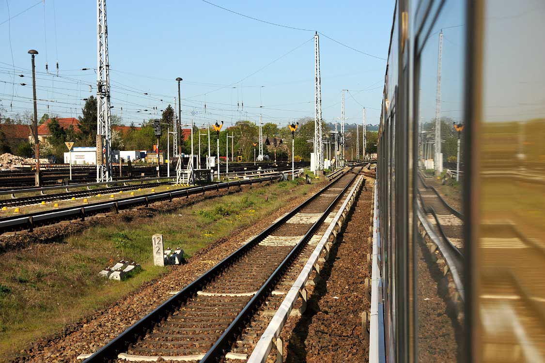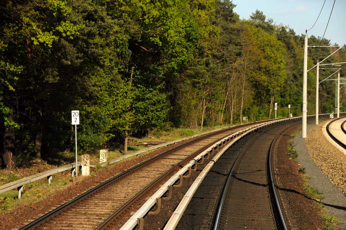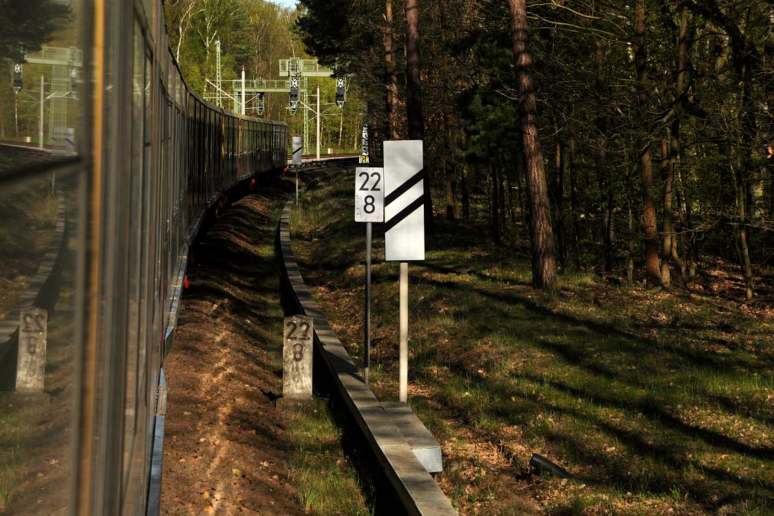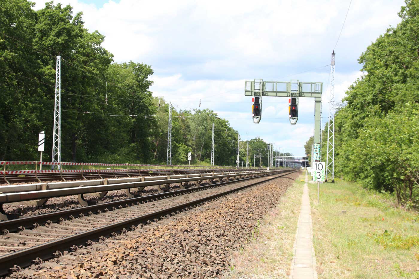 Mittig die beiden Gleise der Schlesischen Bahn mit km 10,2