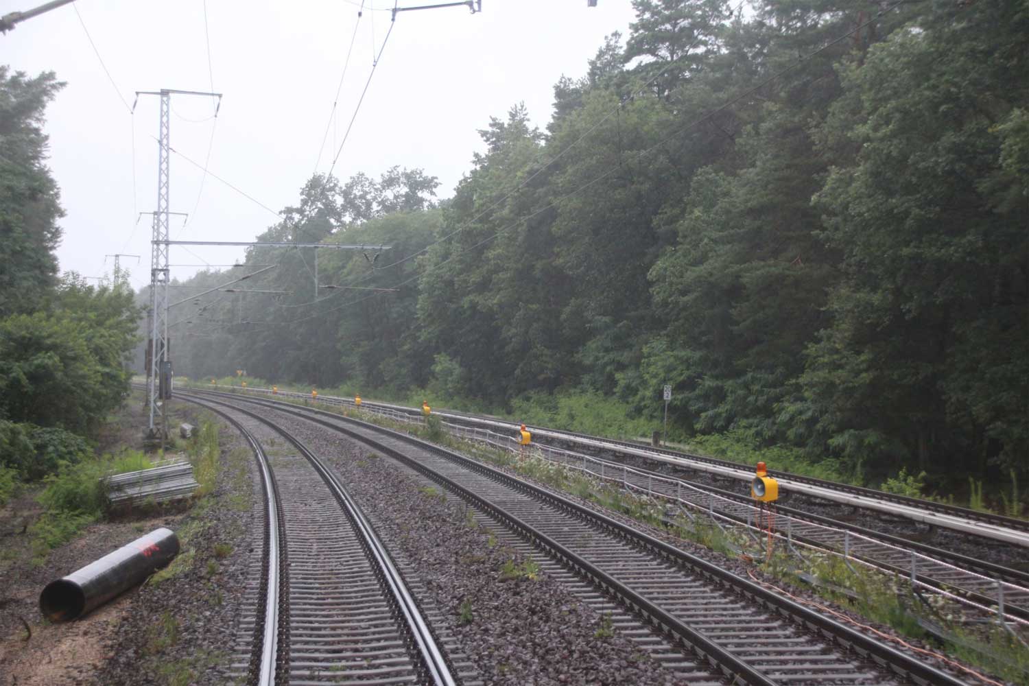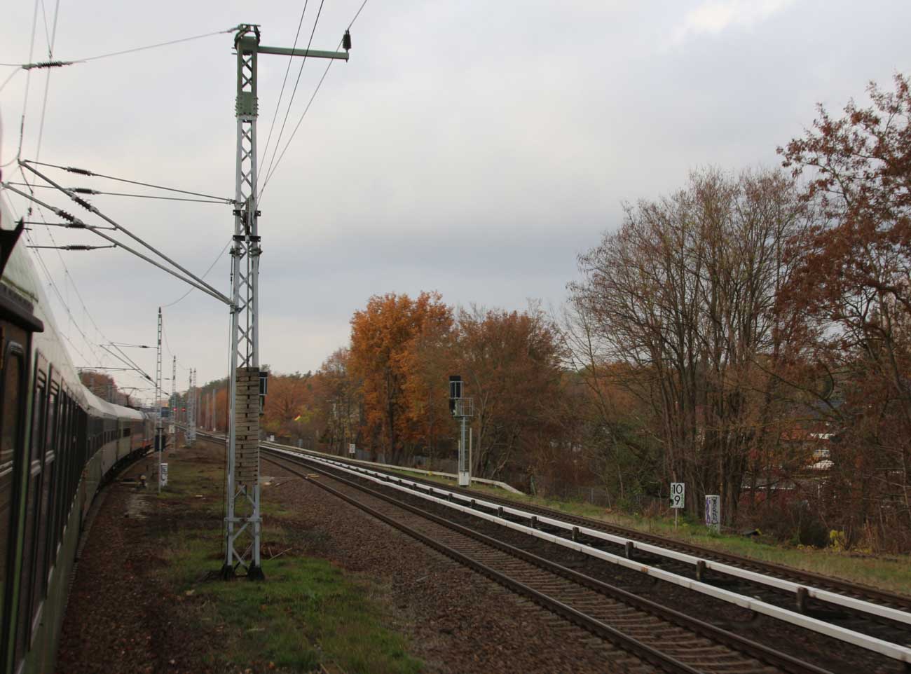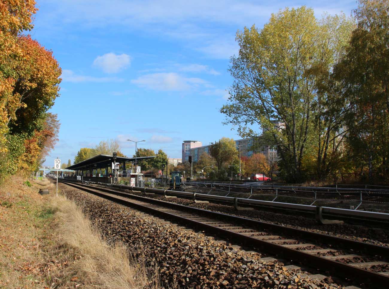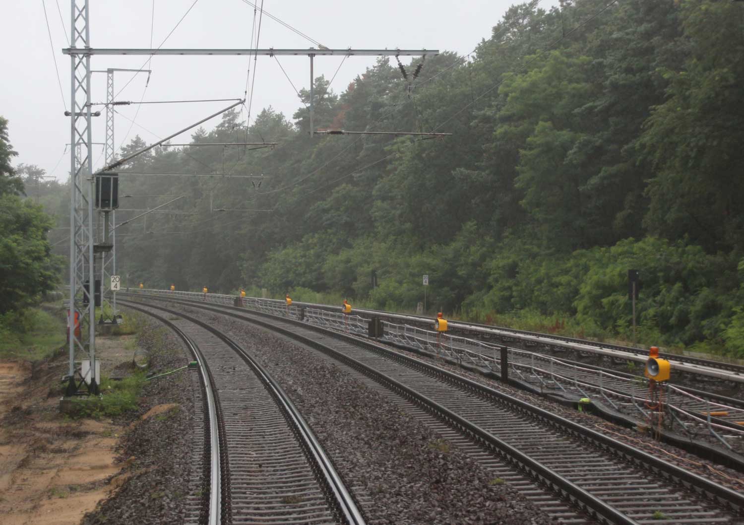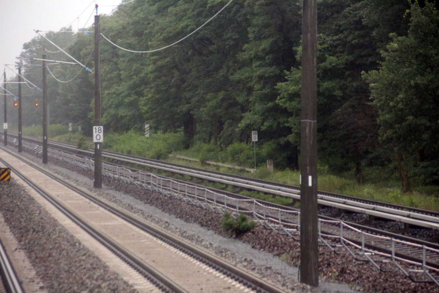 Mittig die beiden Gleise der Schlesischen Bahn mit km 10,2
