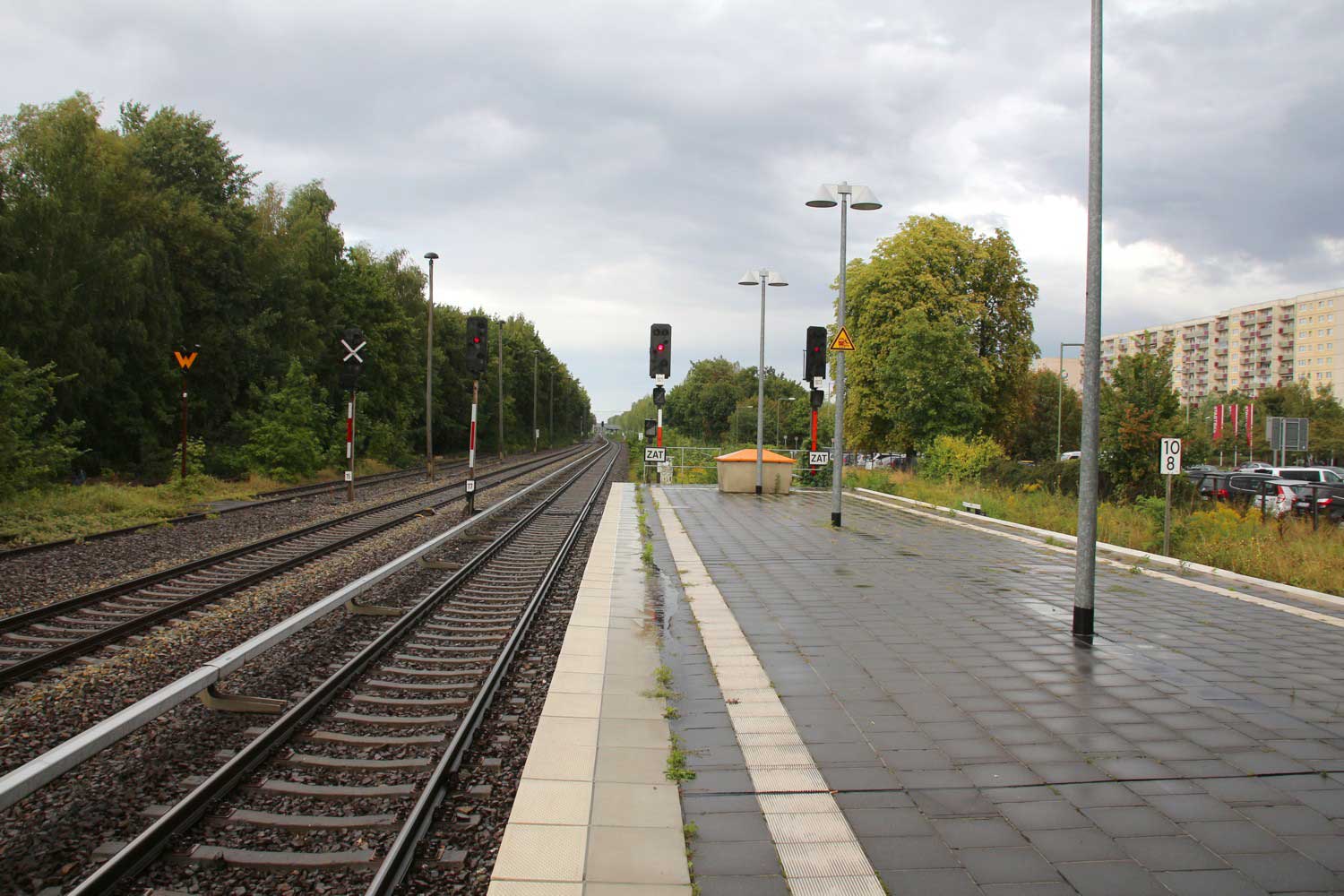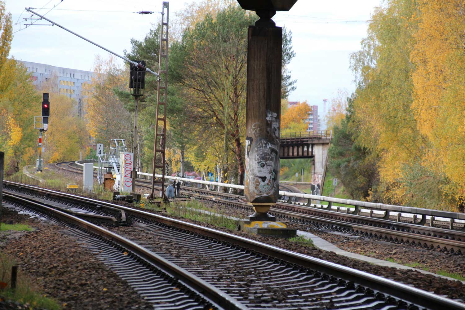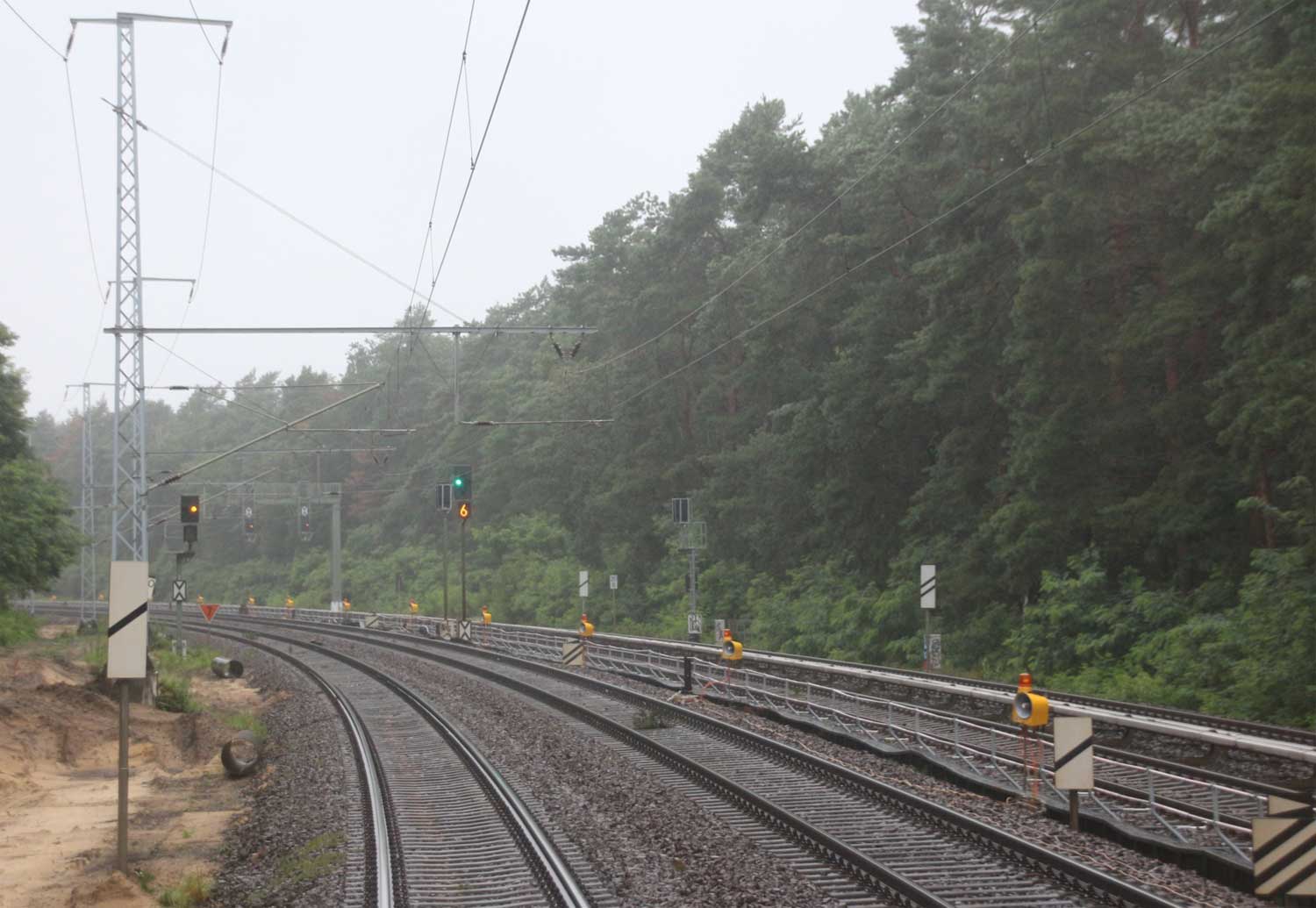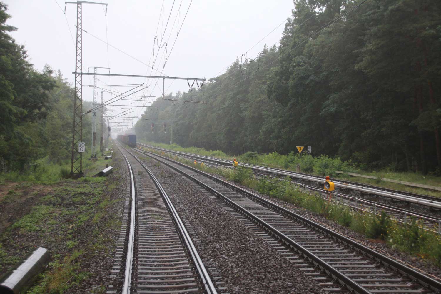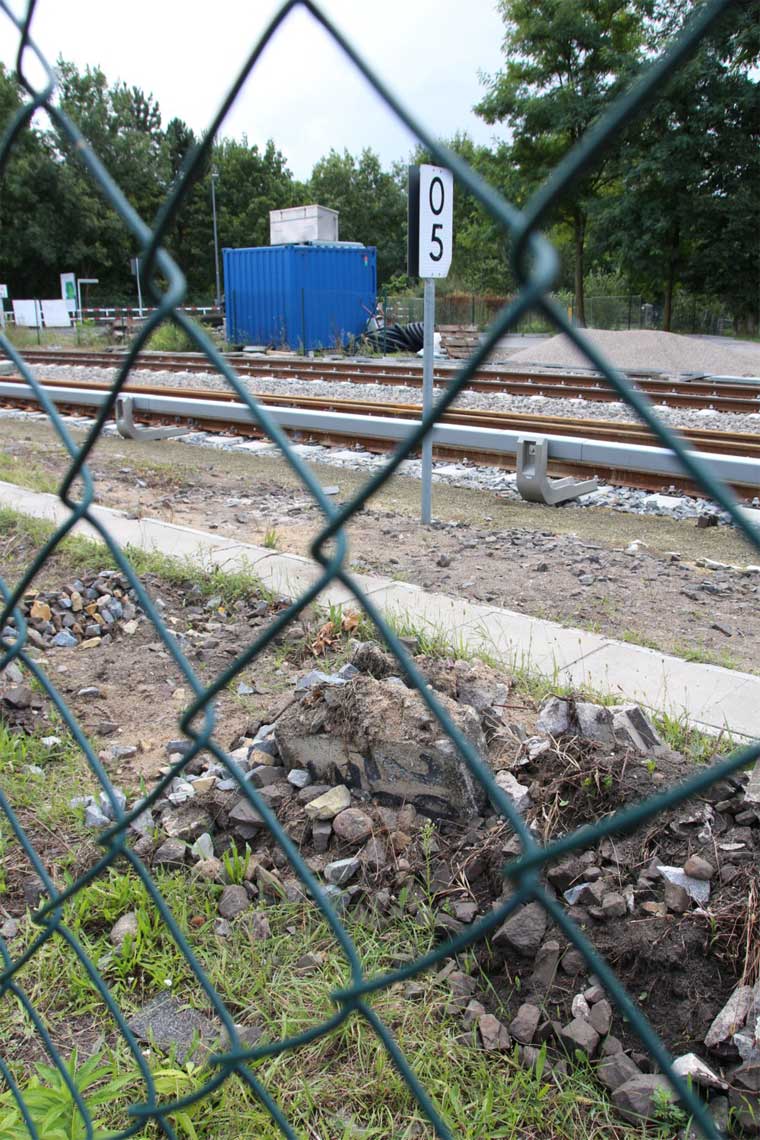 Mittig die beiden Gleise der Schlesischen Bahn mit km 10,2