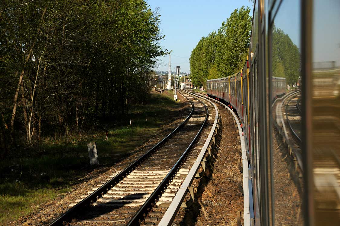 Mittig die beiden Gleise der Schlesischen Bahn