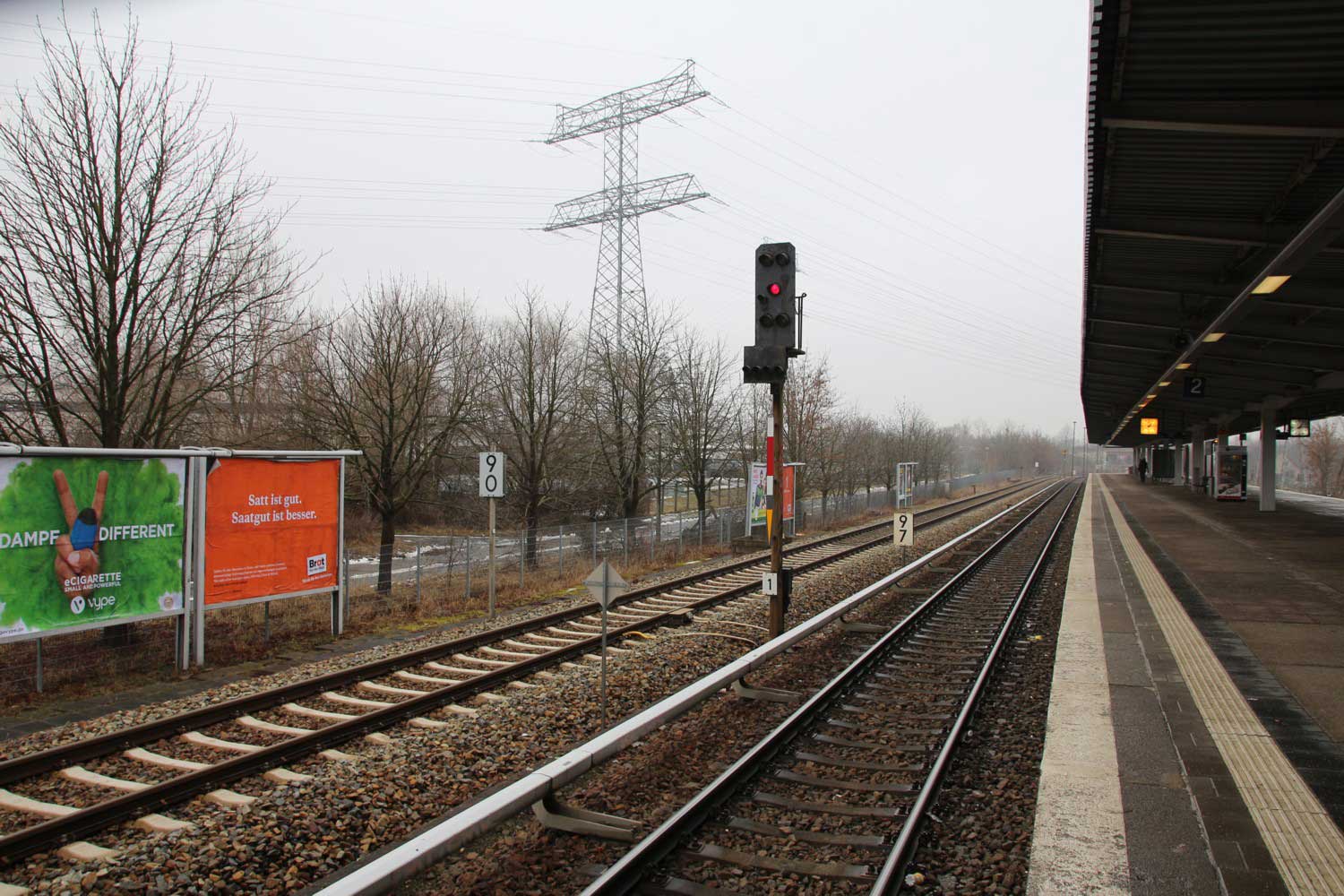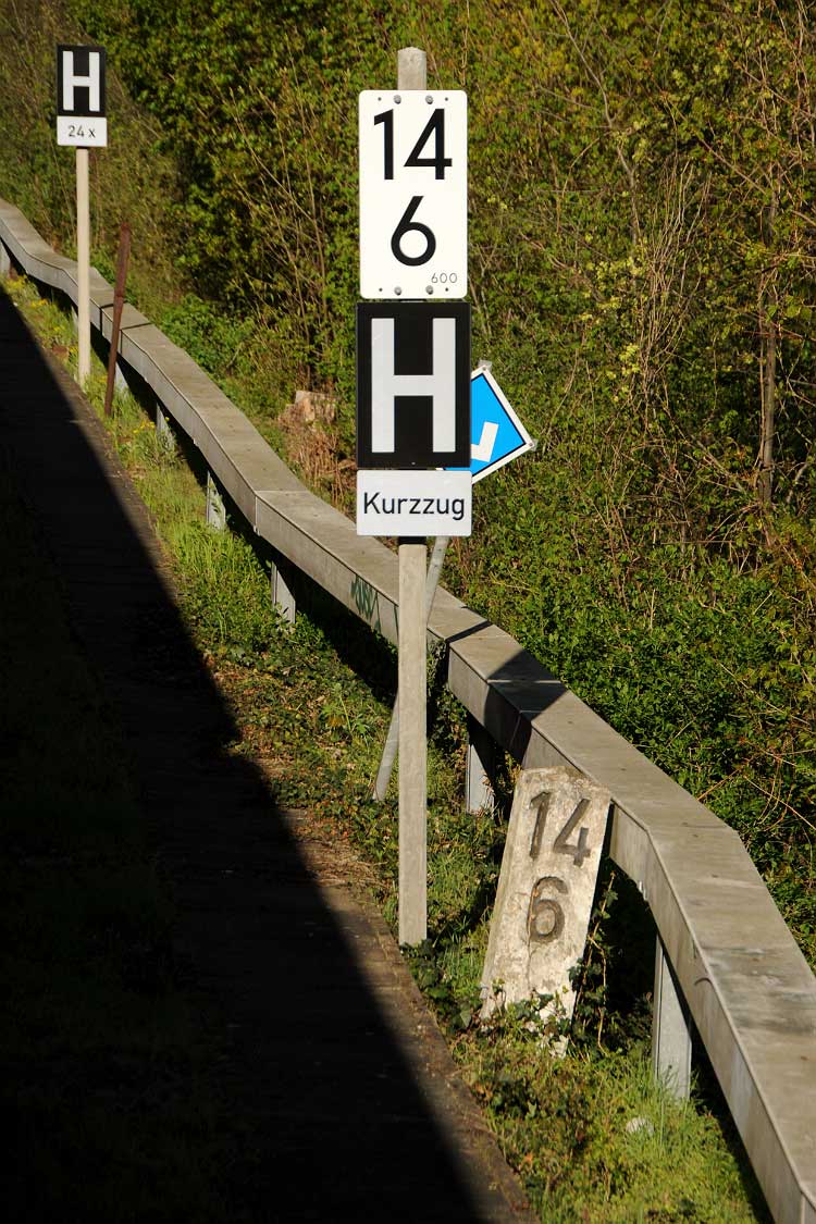 km 4,2 (Tafel ganz rechts) gehört zum Richtungsgleis der Strecke