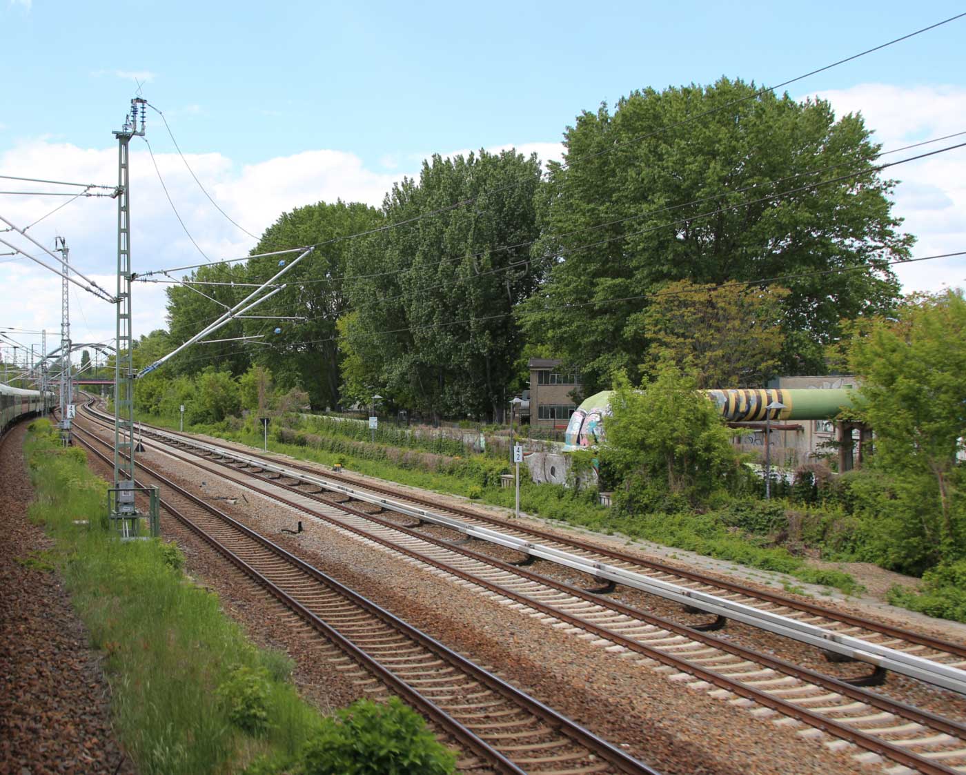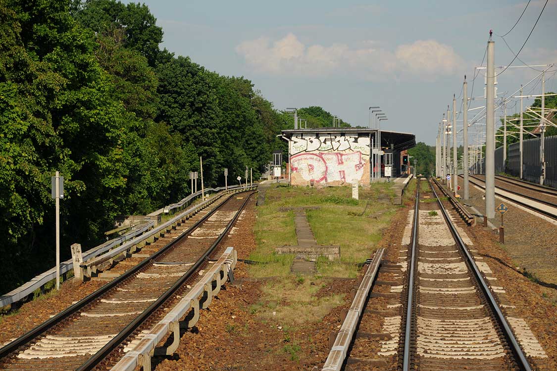 Rechts die beiden Gleise der Schlesischen Bahn