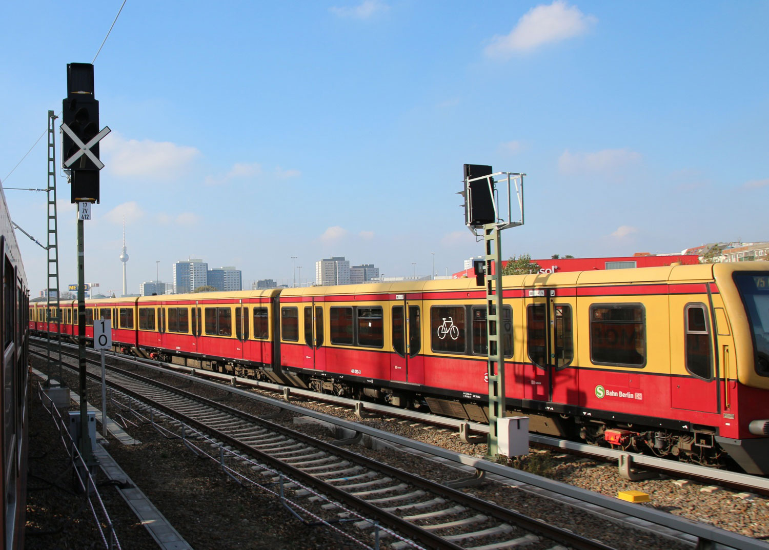 Im Vordergrund die S-Bahn-Strecke Berlin Ostbahnhof (S-Bahn) 0,0 - Erkner (S-Bahn) 24,38 (6004)