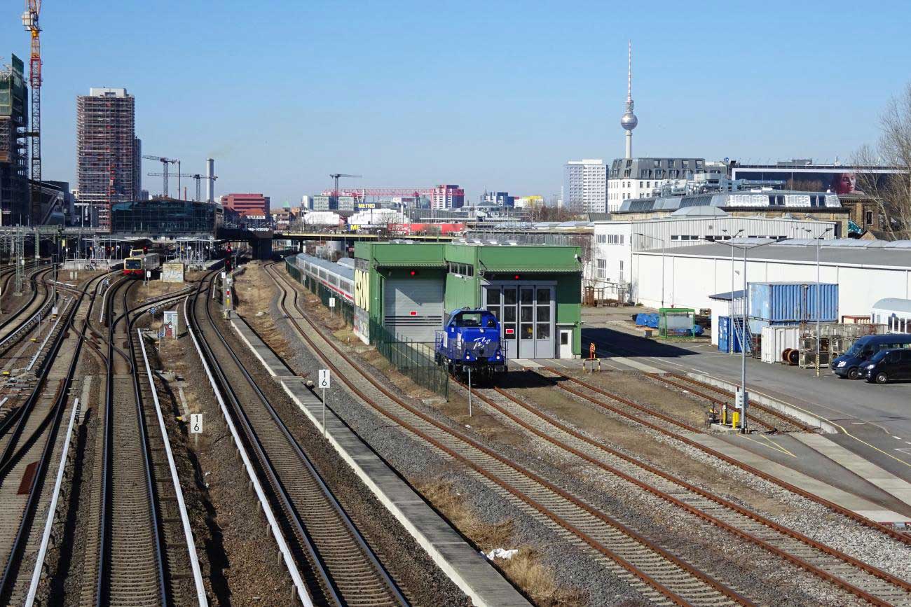 Ganz links das Gleis der Wriezener Bahn