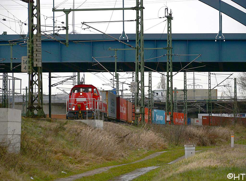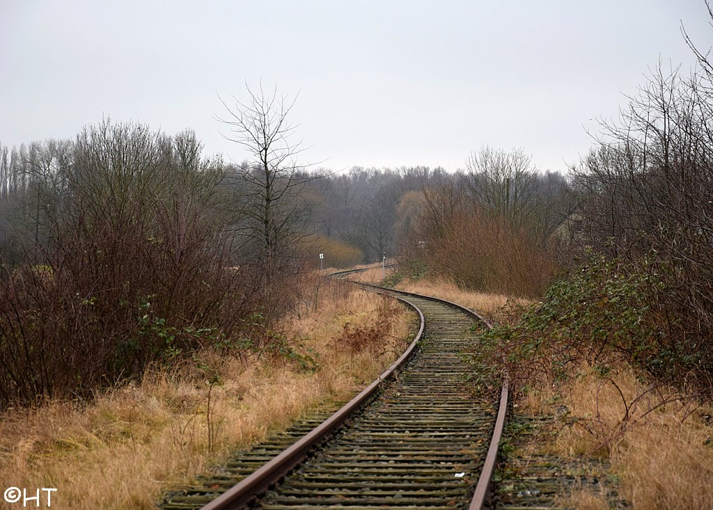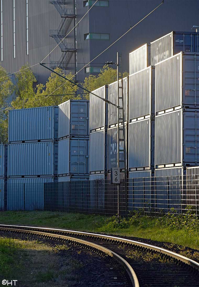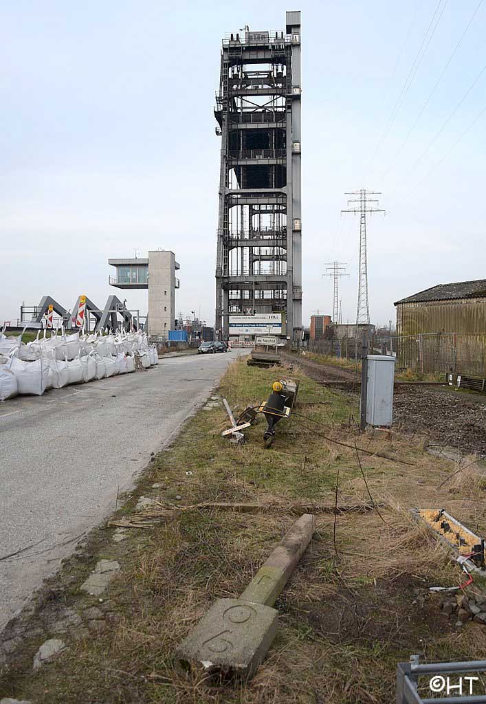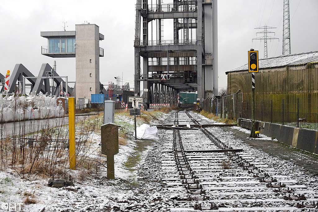 Im Vordergrund das Gleis der Hafenbahn, etwa km 30,35