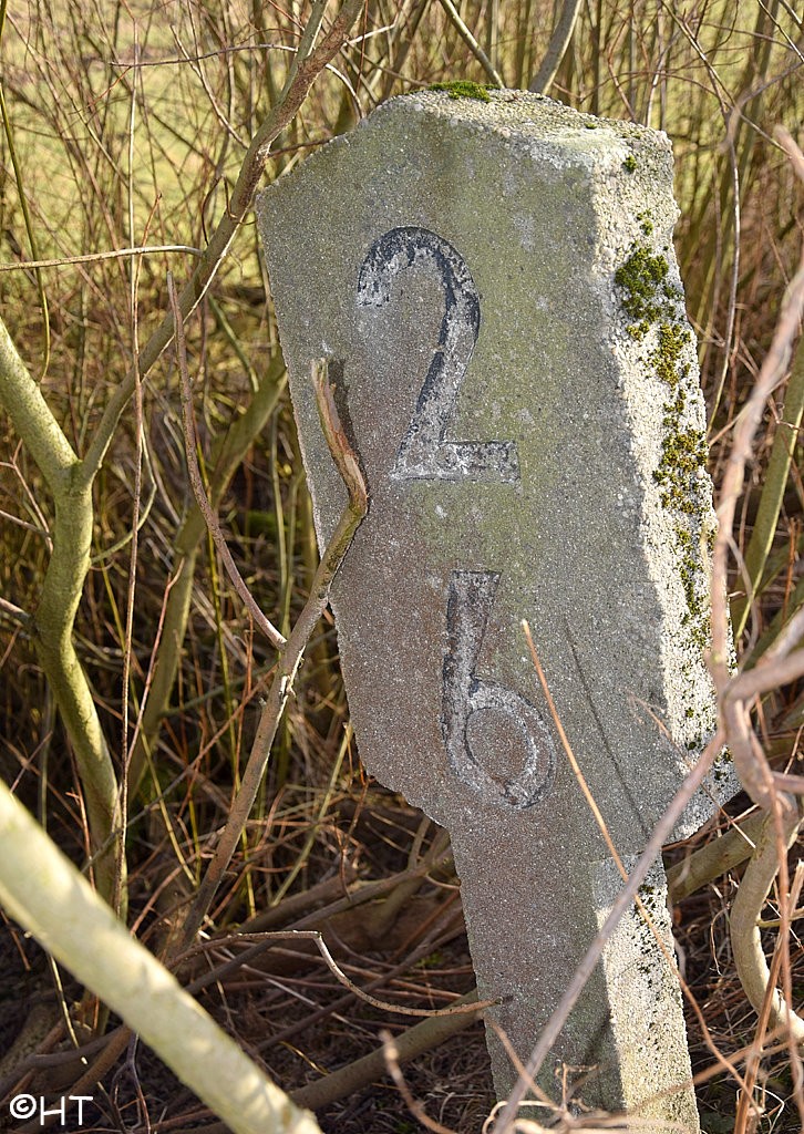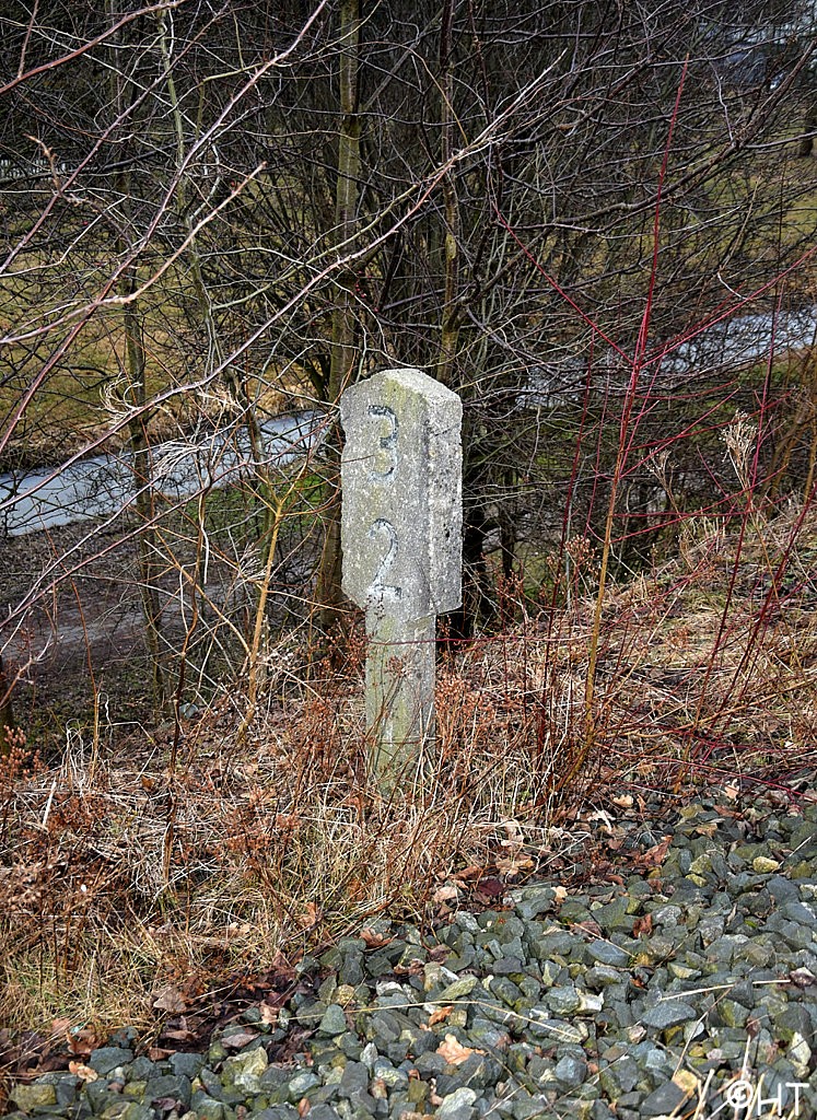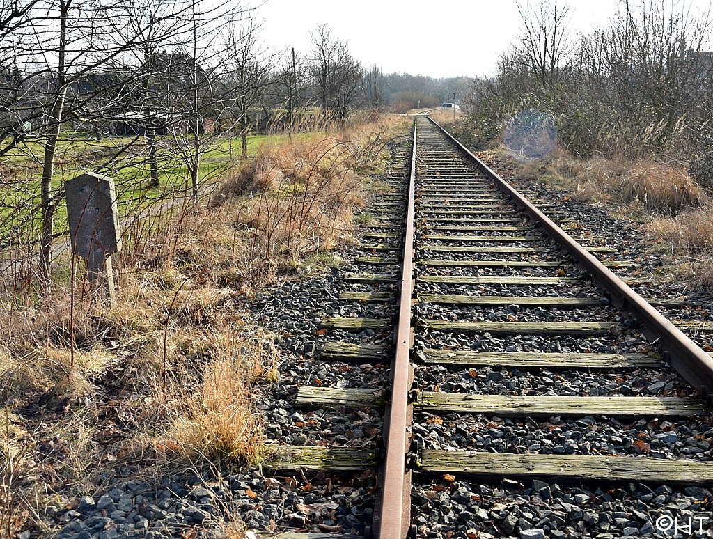 Nach dem Bahnhofsteil Pollhornweg wechselt die Kilometrierung auf REO.