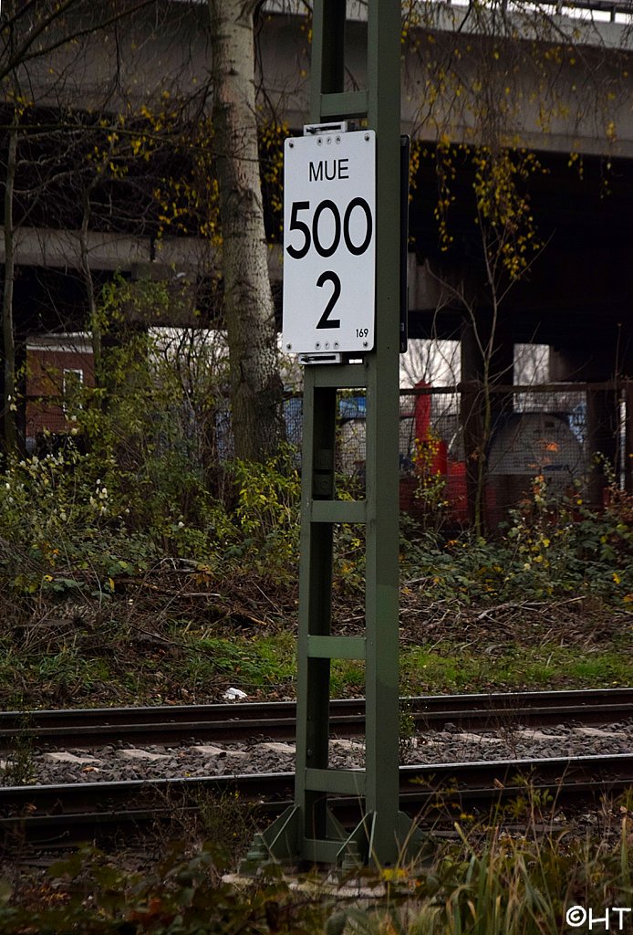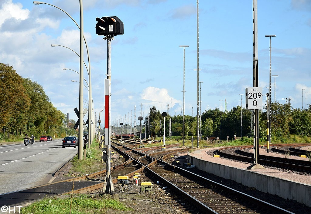 km 30,0 (HBS) [Veddeler Damm, Weiche HBS 004] liegt etwa bei km 207,5 (HBS) der Strecke